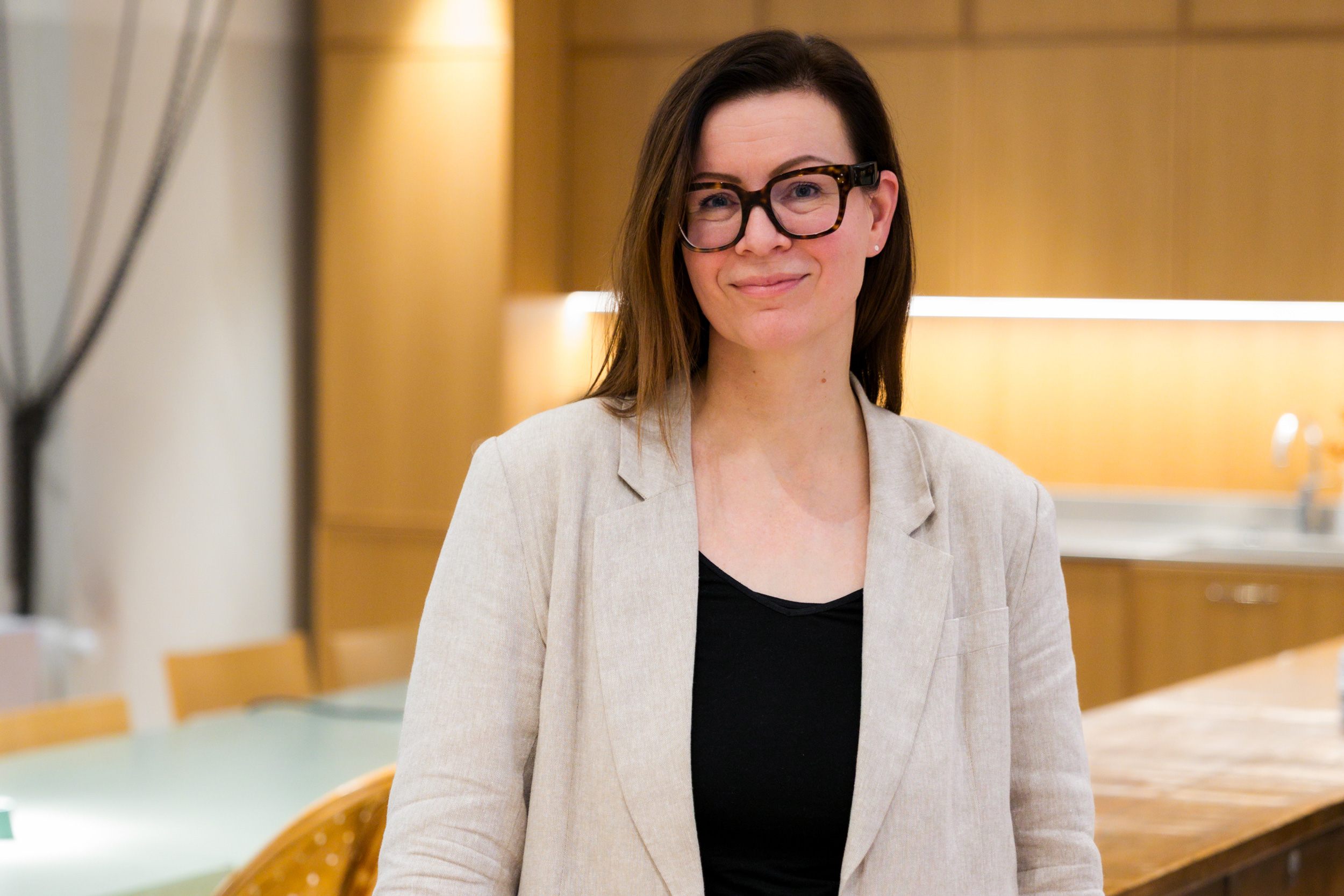 A: Uskon, että samankaltaiset trendit, jotka ovat olleet esillä jo viime vuosina, pysyvät pinnalla myös tulevina vuosina. Vastuullisuus, aitous ja hyvinvointi korostuvat entisestään paitsi suunnittelussa myös laajemmin arjessa. Vietämme suuren osan elämästämme sisätiloissa, joten tiloilla on merkitystä. Hyvinvointiin panostetaan yhä enemmän, ja tilasuunnittelussa siihen voidaan vaikuttaa esimerkiksi turvallisten ja terveellisten materiaalien, hyvän valaistuksen sekä erilaisten tarpeiden huomioimisen kautta.
