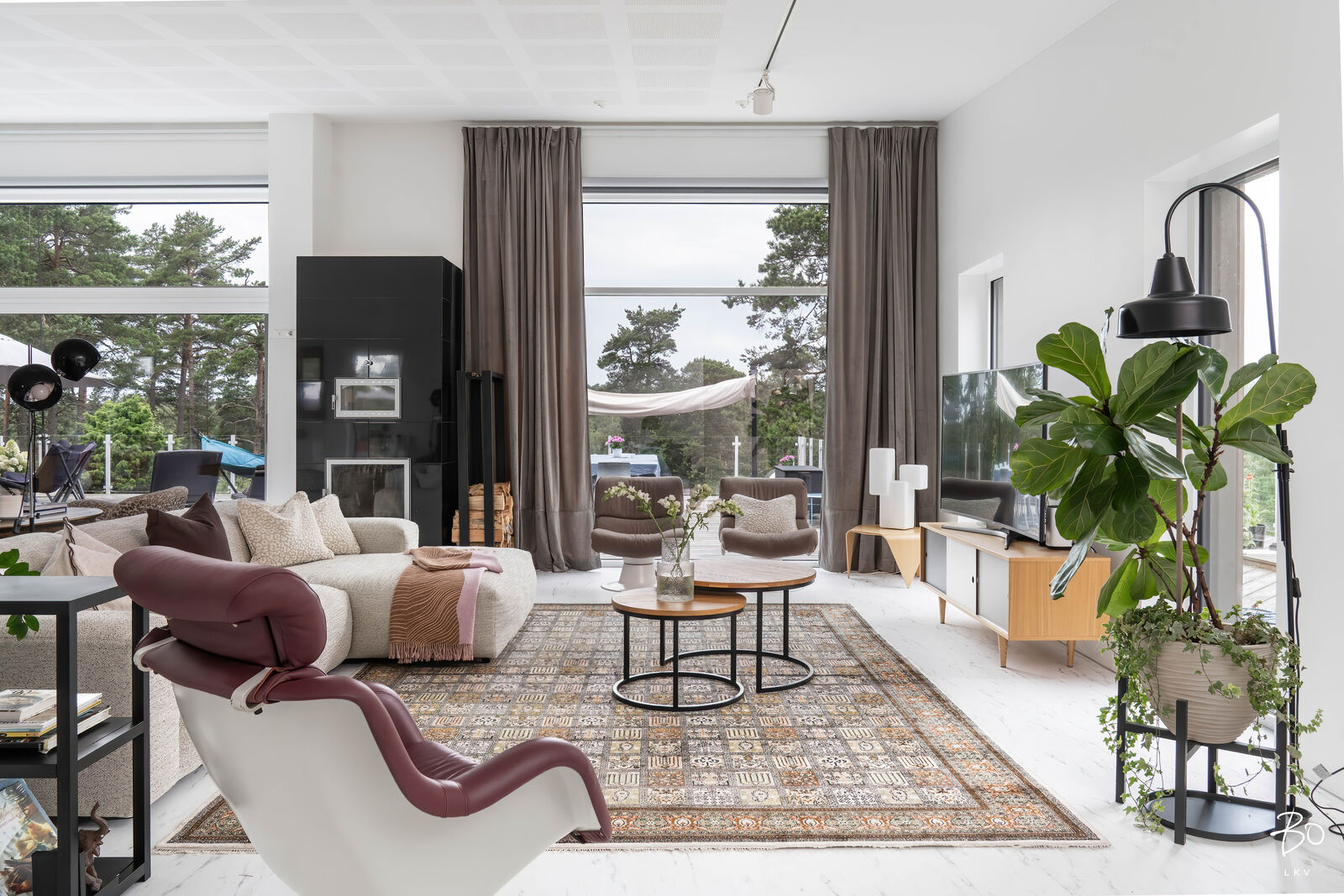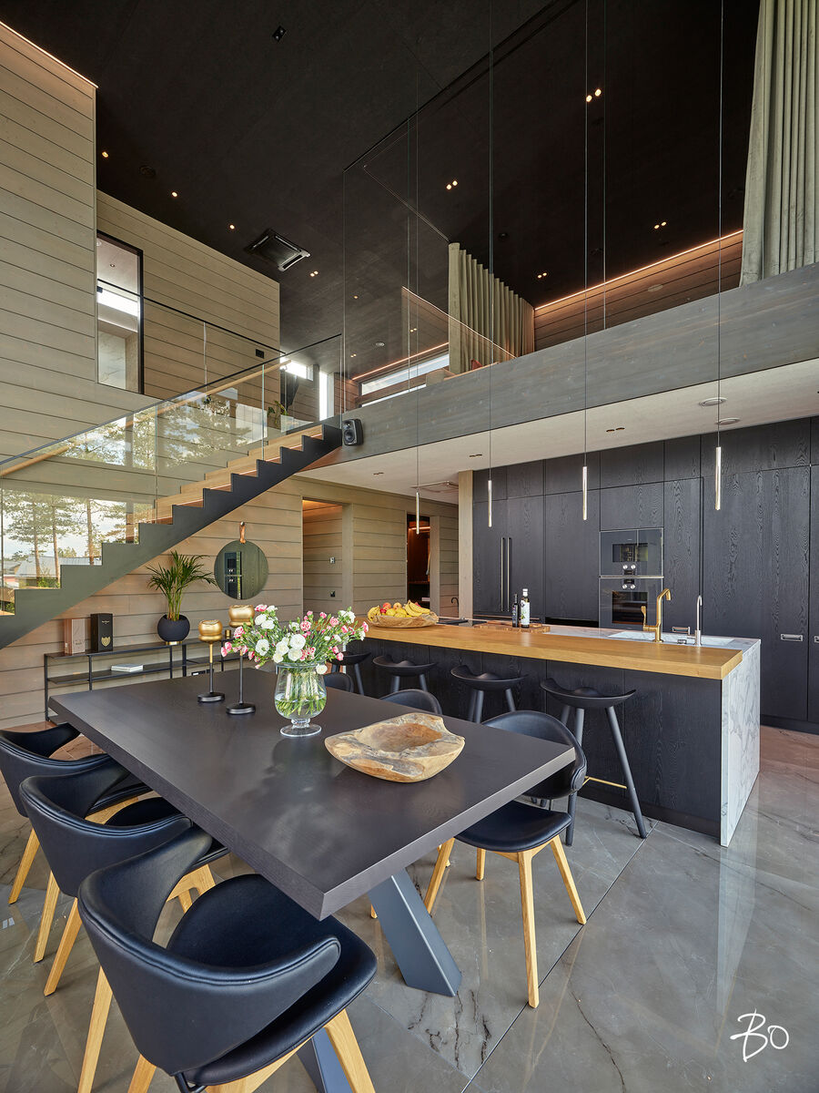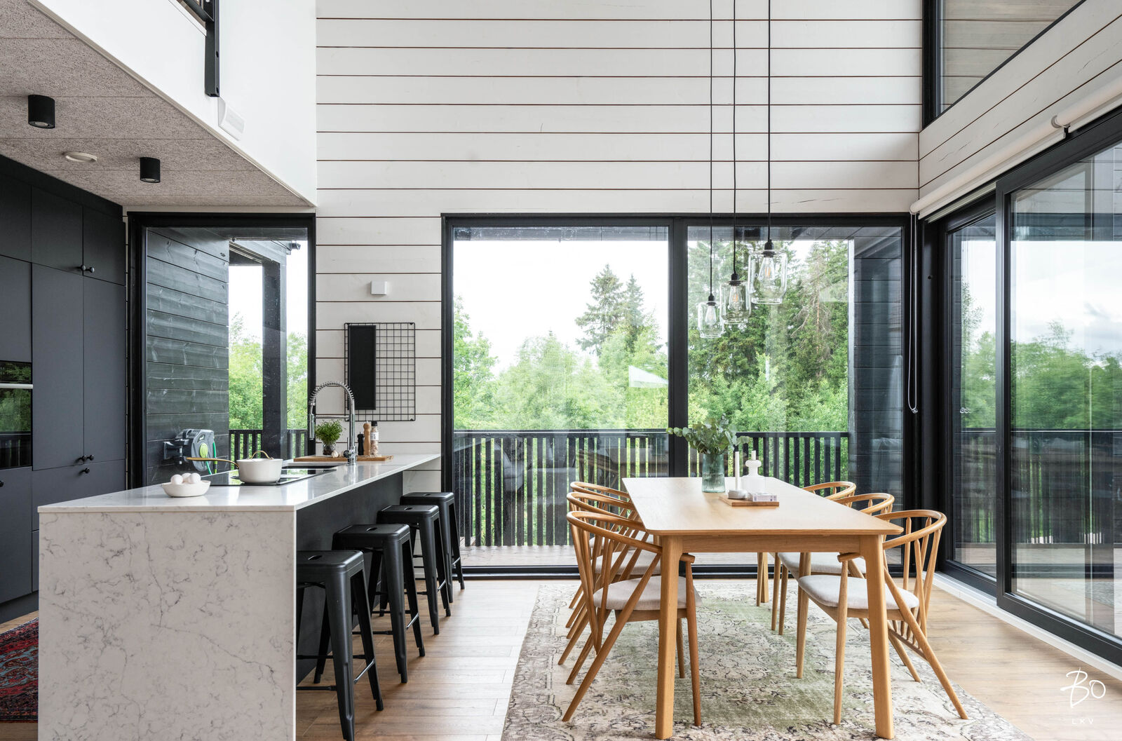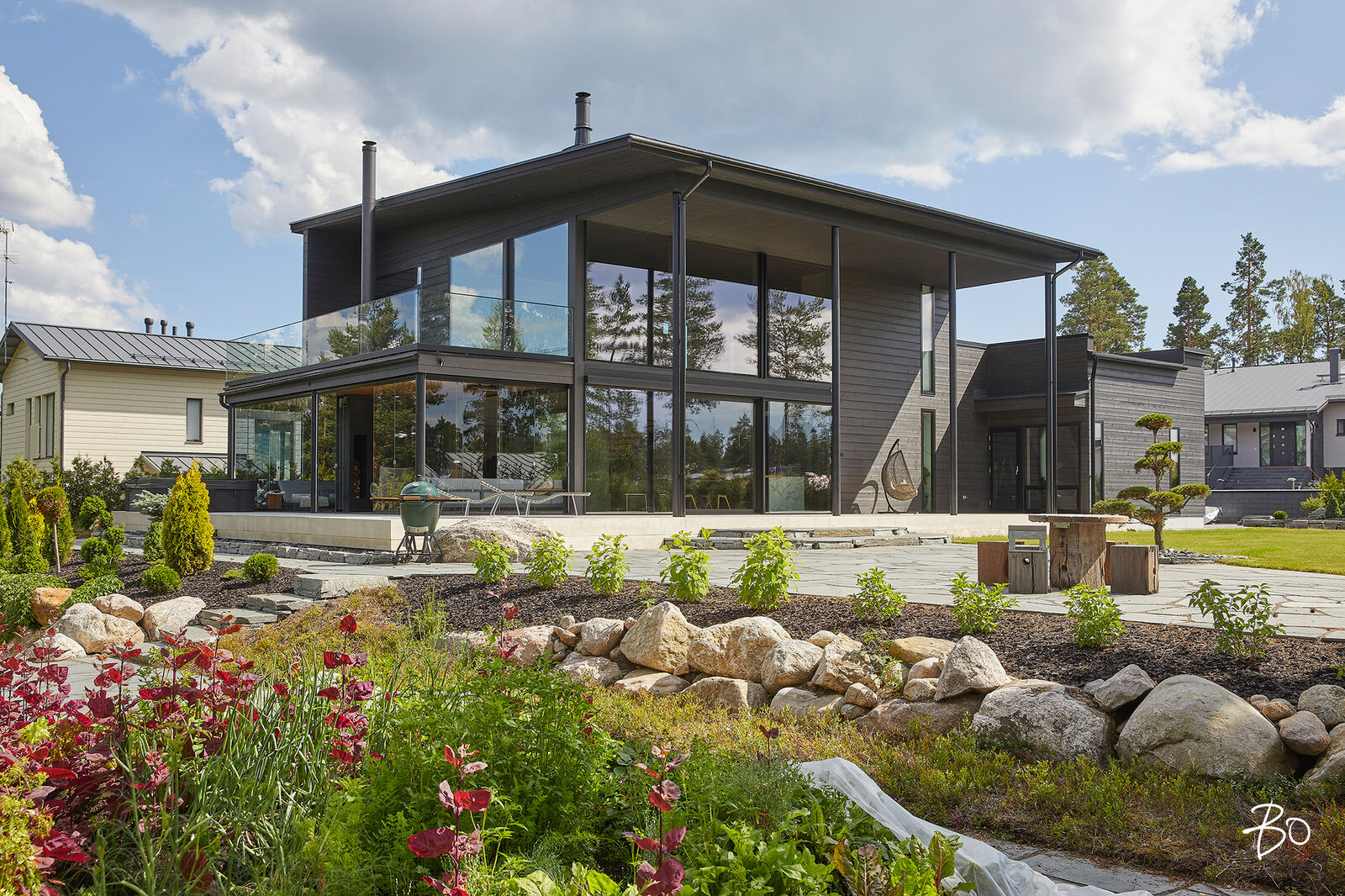 Etusivu / Blogi / Kodit / BO LOVES | KUUKAUDEN HELMET Bo Living Kodit 6.10.2025 BO LOVES | KUUKAUDEN HELMET Näitä omakotitaloja yhdistää komea arkkitehtuuri, kiinnostavat pintamateriaalit ja -ratkaisut. Väriäkään ei ole pelätty ja upea taide viimeistelee sisustukset. TASBYNKAARI 5, SIPOO. Söderkulla, omakotitalo, 4-5h, k, kph/sauna, 3wc, khh, kuntosali, las. ter., parveke, vh. 1 970 000 €, energialuokka B2018. Tämä upea, arkkitehti Janne Kanteen suunnittelema, ajattomuutta ja laatua henkivä, 209 neliöinen, vuonna 2020 rakennettu Honkatalo-hirsitalo sijaitsee Sipoon Söderkullassa. Eteisaula johdattaa avaraan olohuoneeseen, jossa lattiasta kattoon ulottuvat ikkunapinnat tuovat luonnonvalon ja vehreän pihamaiseman upeasti sisätiloihin. Scavolinin keittiö tarjoaa mainiot puitteet vaativaankin makuun. Olohuoneen jatkeena toimii lasitettu terassi ja spa-henkisen kylpyhuoneen yhteyteen sijoittuvat tilava sauna sekä ulkoporeallas. Makuuhuoneet löytyvät ylä- ja alakerrasta, jonka lisäksi toiminnallisuutta lisäävät kolme erillistä wc:tä, tv- ja kodinhoitohuone sekä hyvin varusteltu kuntosali. Talon tilaratkaisuja voi tarvittaessa muokata myös lapsiperheen tarpeisiin. Näyttävät, luonnonläheiset ja laadukkaat pintamateriaalit tuovat asumiseen miellyttävää luksusta. Kohdetta välittää Ronny Roslöf. HÄGGESBÖLENHAARA 34, KIRKKONUMMI. Porkkalanniemi, omakotitalo, 2oh+5mh+k+apuk+2kph+wc+khh+s+et+vh+autotalli+rantasauna, vh. 2 490 000 €. Arkkitehti Ojasen suunnittelema 424,3 neliöinen, v. 2017 rakennettu kivitalo, jonka ulkoverhous on patinoitunutta siperian lehtikuusta, asettuu maisemaan kuin se olisi aina kuulunut siihen. Sisään astuttaessa avautuu vaikuttava 104-neliöinen olohuone, jossa kalteva akustiikkakatto ja lattiasta kattoon ulottuvat ikkunat kehystävät saaristoluontoa kuin taideteosta. Ala Carte-avokeittiö saarekkeen Ylämaan Graniitin harmaa kivityötasolla on toteutettu laadukkailla materiaaleilla ja varusteltu kattavasti – arjen ja juhlan sydän, jossa on tilaa niin kokkaamiselle kuin yhdessäololle. Tässä talossa on upeat kylpyhuoneet, niissä lattia on vuolukivilaattaa ja seinä mm. espanjalaista mikrosementtiä. Myös keittiössä on näyttävä laattalattia. Kohteesta lisätietoja Matias von Schantzilta. MAMMANKUJA 185, HÄMEENKYRÖ Jumesniemi, omakotitalo, 3mh, oh, k, rt, pkh, psh, s, khh, erill. wc, kph, olesk., viinikellari, autotalli + rantasauna/tupa, savusauna, vh. 1 370 000 €, energialuokka C2013. Tämä uniikki Kontion hirsihuvila sijaitsee Mahnalanselän rantamaisemissa Jumesniemessä. Talosta löytyy asuintilaa hulppeat 178,5 m², ja lisäksi on yli 100 m² autotalli- ja harrastetilaa, johon autot kulkevat oman autohissin avulla. Tämä tila muuntautuu helposti kuntosaliksi, leffahuoneeksi tai työ-/harrastetilaksi – vain mielikuvitus on rajana! Upeat järvinäkymät avautuvat suoraan olohuoneesta ja lähes kaikista huoneista on kulku ulos. Terassit ja parvekkeet kiertävät miltei koko talon – lasitettu järvinäkymin ja poreamme viimeistelevät elämyksen. Pyydä kohteesta yksityisesittely Mikko Lamulta. PALOHEINÄNTIE 17B, HELSINKI Paloheinä, omakotitalo, 4h + k + s + at, vh. 990 000 €, energialuokka B2007. Tyylikäs ja linjakas Pet Michaelin suunnittelema uniikki 115,0 m2 kivitalo valmistui luonnonläheiseen ja rauhalliseen Paloheinään v. 2011. Talon sisätiloja leimaa vaikuttava korkea olohuone, jonka koko seinän korkuiset ikkunat antavat valoisuutta ja tilantuntua. Sisustuksessa on käytetty näyttäviä elementtejä maailman tunnetuimmilta designbrändeiltä. Kohdetta välittää Marko Perälä. VAAHTERAKALLIONTIE 12, PORVOO. Hermanninsaari, omakotitalo, oh, avok, 5 mh, s-os, khh, kph, aula, erill.wc, ullakkokomero, terassi, kattoterassi, vh. 789 000 €, energialuokka C2013. Painumattomasta lamellihirrestä v. 2020 rakennettu komea 170,5 neliöinen omakotitalo on harkittu ja näyttävä kokonaisuus. Ilmavan olohuonetilan suuri ikkunapääty on henkeäsalpaavan kaunis. Elegantit mustat elementit, kuten hauskasti perinteisen tyylinen varaava pystyuuni sekä keittiökaapit tuovat sopivaa särmää puhdaslinjaiseen tilaan. Keittiö on suunniteltu aivan täydellisesti palvelemaan yhteisöllistä kokkailua – ja mikä ihaninta, kokkailun lomassa voi pysähtyä ihailemaan suurista ikkunoista avautuvaa maisemaa! Kysy kohteesta lisätietoja Jatta Toivolalta. KINKOMAANTIE 70, MUURAME Kinkomaa, omakotitalo, 4h, k , s , khh, terassi, autokatos, vh. 462 000 €, energialuokka B2018. Vuonna 2022 valmistunut laadukas 144,5 m2 helmi on puutalo Muuramessa suositulla Kinkomaalla. Pohjaratkaisussa on panostettu toimivuuteen. Olohuone ja Puusepänliike Astikaisen tekemä keittiö muodostavat valoisan yhtenäisen tilan, jossa perheen ja ystävien on mukava kokoontua viettämään yhteistä aikaa. Asunnon makuuhuoneet ovat tilavia ja valoisia. Upea saunaosasto kutsuu rentoutumaan pitkän päivän päätteeksi. Tässä talossa suuri suojaisa terassi, pergola ja viihtyisä valmis piha ovat olennainen osa kokonaisuutta. Siellä pääset nauttimaan auringosta ja vehreästä näkymästä puutarhaan. Pergolan suojissa odottaa ihana ulkoporeamme rentoutumista varten. Lisätietoja Anna-Kaisa Viljanmaalta. HARUS 2, JYVÄSKYLÄ. Ylä-Myllyjärvi, omakotitalo, 4h, oh, k, khh, s, parvi, vh. 310 000 €, energialuokka D2018. Tässä kodissa on ihana tummanvihreä keittiö! Tämän 147,8 m2 omakotitalon pohjaratkaisu on suunniteltu perhe-elämän tarpeisiin tarjoten neljä makuuhuonetta, tilavan olohuoneen, keittiön, kodinhoitohuoneen sekä saunan. Asunnon sisustuksessa on kiinnitetty kaikkinensa huomiota lämpimiin sävyihin kuten runsaisiin puupintoihin, jotka luovat kodikasta ja kutsuvaa tunnelmaa. Kohdetta esittelee Veli-Matti Viljanmaa. EESTINKYLÄNTIE 89, KIRKKONUMMI Eestinkylä, Kirkkonummi | Omakotitalo | 2h+k+th+parvitila+ph+s+2erill.wc+ateljee+ak+at+liiketila, vh. 550 000 €, energialuokka D2018. 1980-luvulla valmistunut 257