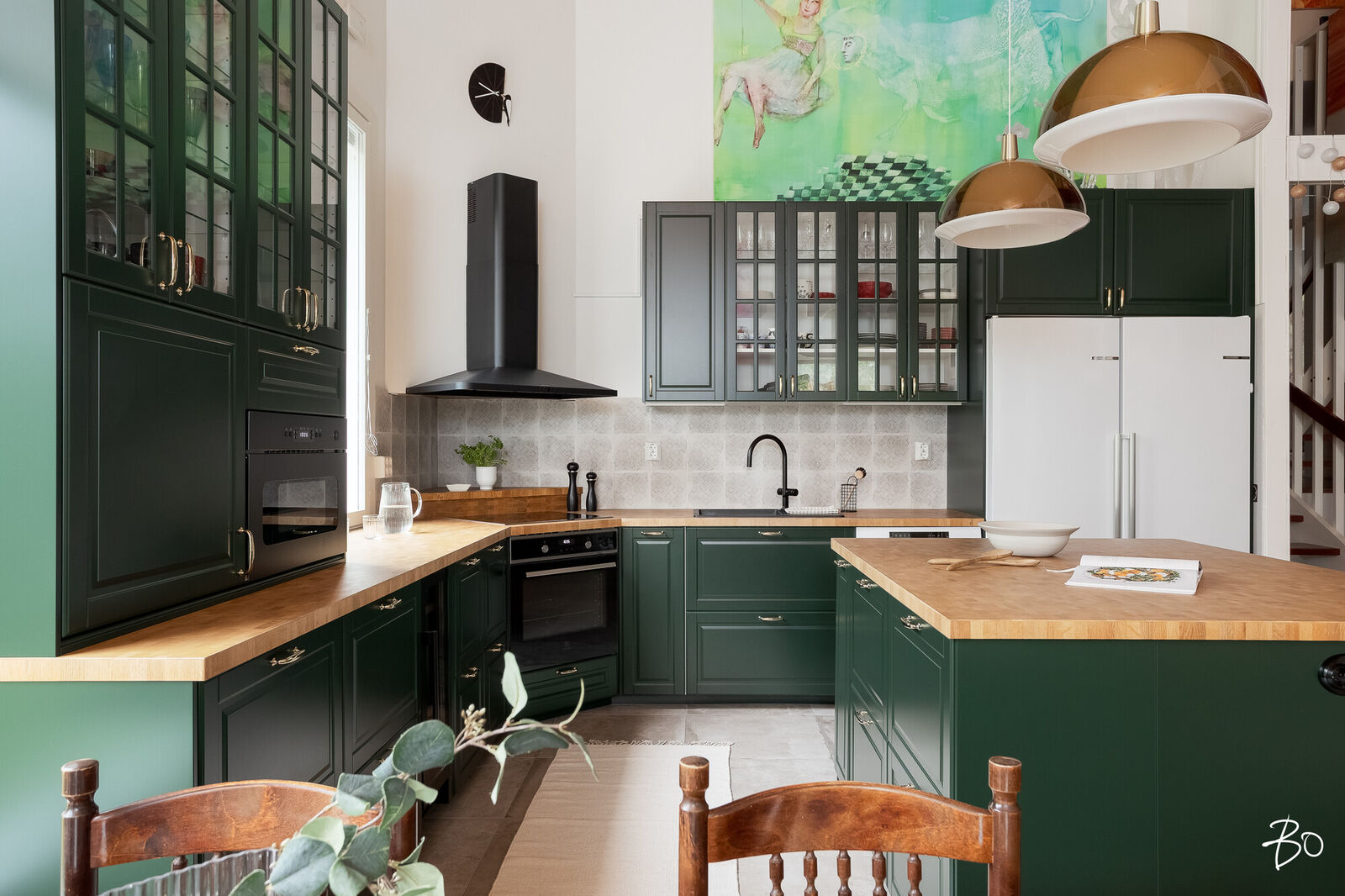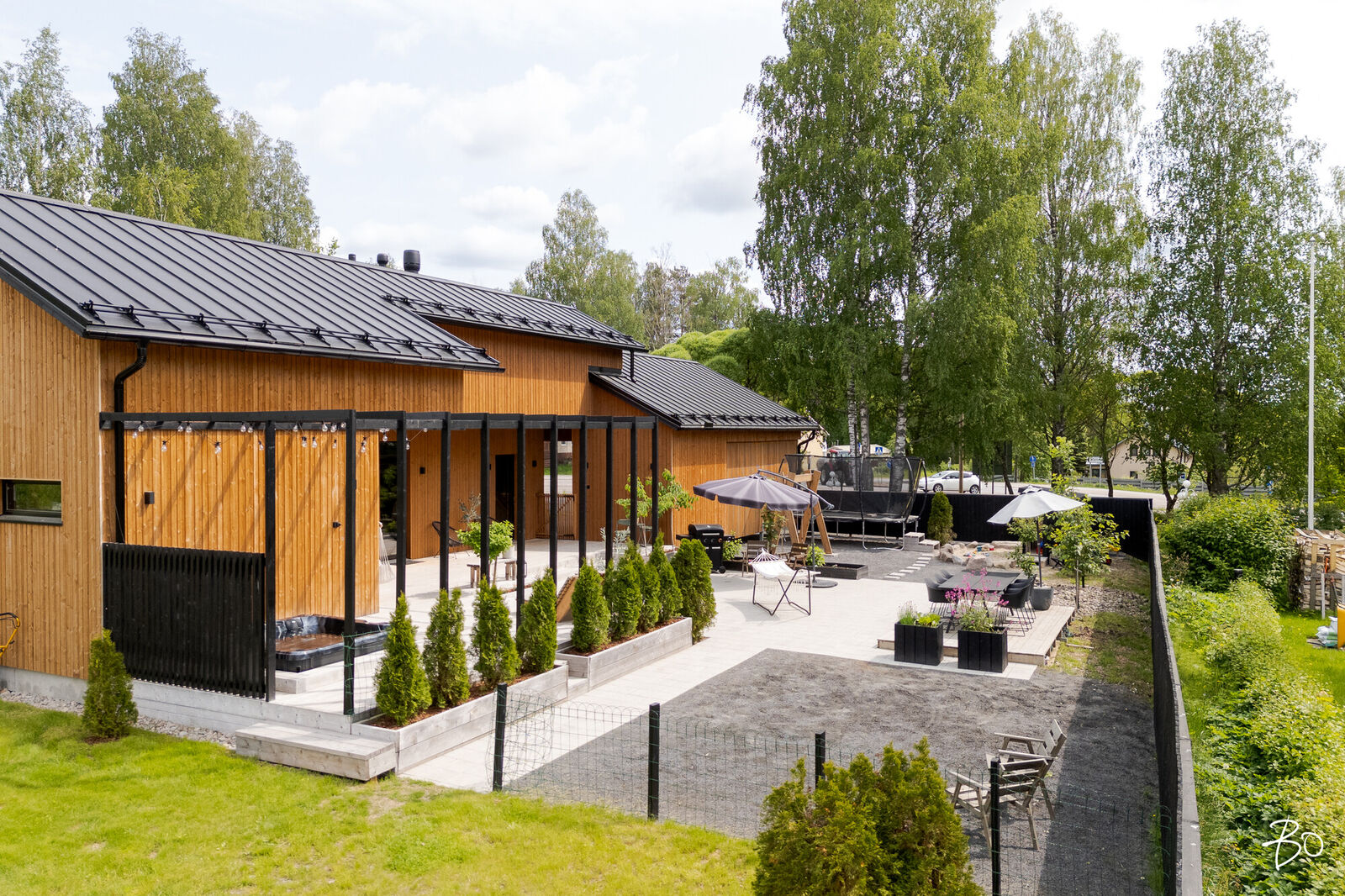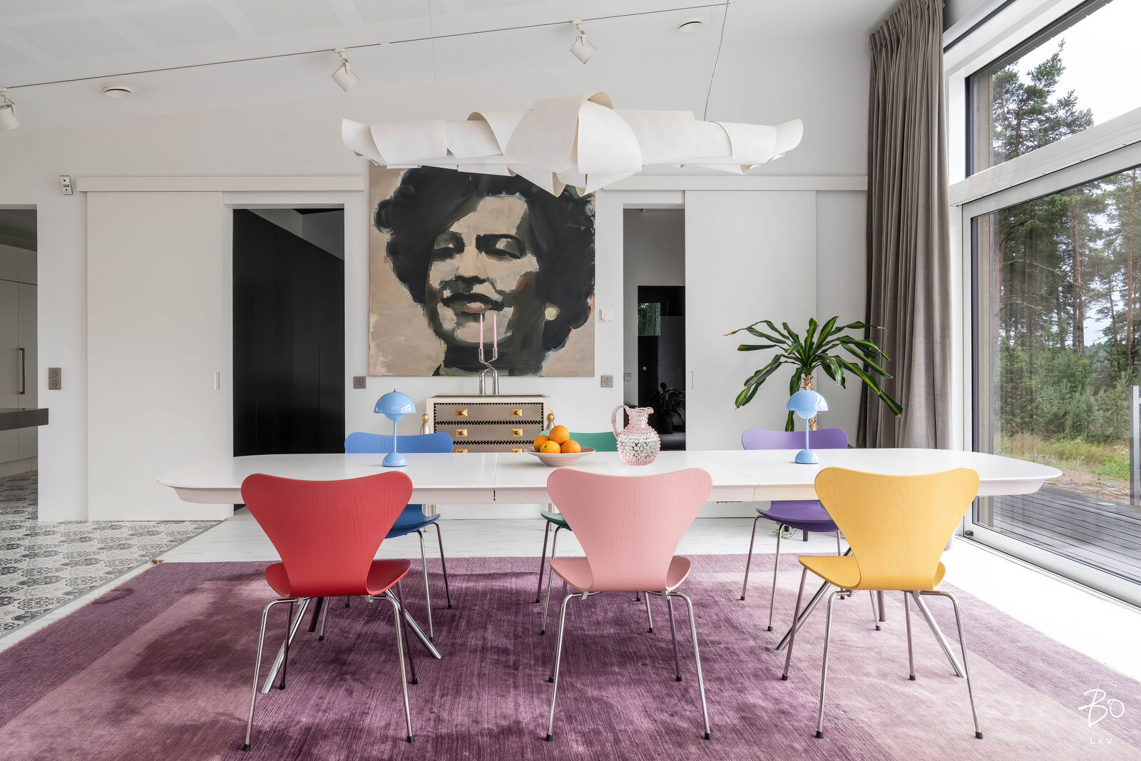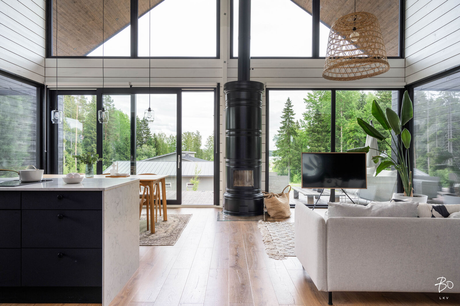 Etusivu / Blogi / Kodit / BO LOVES | KUUKAUDEN HELMET Bo Living Kodit 6.10.2025 BO LOVES | KUUKAUDEN HELMET Näitä omakotitaloja yhdistää komea arkkitehtuuri, kiinnostavat pintamateriaalit ja -ratkaisut. Väriäkään ei ole pelätty ja upea taide viimeistelee sisustukset. TASBYNKAARI 5, SIPOO. Söderkulla, omakotitalo, 4-5h, k, kph/sauna, 3wc, khh, kuntosali, las. ter., parveke, vh. 1 970 000 €, energialuokka B2018. Tämä upea, arkkitehti Janne Kanteen suunnittelema, ajattomuutta ja laatua henkivä, 209 neliöinen, vuonna 2020 rakennettu Honkatalo-hirsitalo sijaitsee Sipoon Söderkullassa. Eteisaula johdattaa avaraan olohuoneeseen, jossa lattiasta kattoon ulottuvat ikkunapinnat tuovat luonnonvalon ja vehreän pihamaiseman upeasti sisätiloihin. Scavolinin keittiö tarjoaa mainiot puitteet vaativaankin makuun. Olohuoneen jatkeena toimii lasitettu terassi ja spa-henkisen kylpyhuoneen yhteyteen sijoittuvat tilava sauna sekä ulkoporeallas. Makuuhuoneet löytyvät ylä- ja alakerrasta, jonka lisäksi toiminnallisuutta lisäävät kolme erillistä wc:tä, tv- ja kodinhoitohuone sekä hyvin varusteltu kuntosali. Talon tilaratkaisuja voi tarvittaessa muokata myös lapsiperheen tarpeisiin. Näyttävät, luonnonläheiset ja laadukkaat pintamateriaalit tuovat asumiseen miellyttävää luksusta. Kohdetta välittää Ronny Roslöf. HÄGGESBÖLENHAARA 34, KIRKKONUMMI. Porkkalanniemi, omakotitalo, 2oh+5mh+k+apuk+2kph+wc+khh+s+et+vh+autotalli+rantasauna, vh. 2 490 000 €. Arkkitehti Ojasen suunnittelema 424,3 neliöinen, v. 2017 rakennettu kivitalo, jonka ulkoverhous on patinoitunutta siperian lehtikuusta, asettuu maisemaan kuin se olisi aina kuulunut siihen. Sisään astuttaessa avautuu vaikuttava 104-neliöinen olohuone, jossa kalteva akustiikkakatto ja lattiasta kattoon ulottuvat ikkunat kehystävät saaristoluontoa kuin taideteosta. Ala Carte-avokeittiö saarekkeen Ylämaan Graniitin harmaa kivityötasolla on toteutettu laadukkailla materiaaleilla ja varusteltu kattavasti – arjen ja juhlan sydän, jossa on tilaa niin kokkaamiselle kuin yhdessäololle. Tässä talossa on upeat kylpyhuoneet, niissä lattia on vuolukivilaattaa ja seinä mm. espanjalaista mikrosementtiä. Myös keittiössä on näyttävä laattalattia. Kohteesta lisätietoja Matias von Schantzilta. MAMMANKUJA 185, HÄMEENKYRÖ Jumesniemi, omakotitalo, 3mh, oh, k, rt, pkh, psh, s, khh, erill. wc, kph, olesk., viinikellari, autotalli + rantasauna/tupa, savusauna, vh. 1 370 000 €, energialuokka C2013. Tämä uniikki Kontion hirsihuvila sijaitsee Mahnalanselän rantamaisemissa Jumesniemessä. Talosta löytyy asuintilaa hulppeat 178,5 m², ja lisäksi on yli 100 m² autotalli- ja harrastetilaa, johon autot kulkevat oman autohissin avulla. Tämä tila muuntautuu helposti kuntosaliksi, leffahuoneeksi tai työ-/harrastetilaksi – vain mielikuvitus on rajana! Upeat järvinäkymät avautuvat suoraan olohuoneesta ja lähes kaikista huoneista on kulku ulos. Terassit ja parvekkeet kiertävät miltei koko talon – lasitettu järvinäkymin ja poreamme viimeistelevät elämyksen. Pyydä kohteesta yksityisesittely Mikko Lamulta. PALOHEINÄNTIE 17B, HELSINKI Paloheinä, omakotitalo, 4h + k + s + at, vh. 990 000 €, energialuokka B2007. Tyylikäs ja linjakas Pet Michaelin suunnittelema uniikki 115,0 m2 kivitalo valmistui luonnonläheiseen ja rauhalliseen Paloheinään v. 2011. Talon sisätiloja leimaa vaikuttava korkea olohuone, jonka koko seinän korkuiset ikkunat antavat valoisuutta ja tilantuntua. Sisustuksessa on käytetty näyttäviä elementtejä maailman tunnetuimmilta designbrändeiltä. Kohdetta välittää Marko Perälä. VAAHTERAKALLIONTIE 12, PORVOO. Hermanninsaari, omakotitalo, oh, avok, 5 mh, s-os, khh, kph, aula, erill.wc, ullakkokomero, terassi, kattoterassi, vh. 789 000 €, energialuokka C2013. Painumattomasta lamellihirrestä v. 2020 rakennettu komea 170,5 neliöinen omakotitalo on harkittu ja näyttävä kokonaisuus. Ilmavan olohuonetilan suuri ikkunapääty on henkeäsalpaavan kaunis. Elegantit mustat elementit, kuten hauskasti perinteisen tyylinen varaava pystyuuni sekä keittiökaapit tuovat sopivaa särmää puhdaslinjaiseen tilaan. Keittiö on suunniteltu aivan täydellisesti palvelemaan yhteisöllistä kokkailua – ja mikä ihaninta, kokkailun lomassa voi pysähtyä ihailemaan suurista ikkunoista avautuvaa maisemaa! Kysy kohteesta lisätietoja Jatta Toivolalta. KINKOMAANTIE 70, MUURAME Kinkomaa, omakotitalo, 4h, k , s , khh, terassi, autokatos, vh. 462 000 €, energialuokka B2018. Vuonna 2022 valmistunut laadukas 144,5 m2 helmi on puutalo Muuramessa suositulla Kinkomaalla. Pohjaratkaisussa on panostettu toimivuuteen. Olohuone ja Puusepänliike Astikaisen tekemä keittiö muodostavat valoisan yhtenäisen tilan, jossa perheen ja ystävien on mukava kokoontua viettämään yhteistä aikaa. Asunnon makuuhuoneet ovat tilavia ja valoisia. Upea saunaosasto kutsuu rentoutumaan pitkän päivän päätteeksi. Tässä talossa suuri suojaisa terassi, pergola ja viihtyisä valmis piha ovat olennainen osa kokonaisuutta. Siellä pääset nauttimaan auringosta ja vehreästä näkymästä puutarhaan. Pergolan suojissa odottaa ihana ulkoporeamme rentoutumista varten. Lisätietoja Anna-Kaisa Viljanmaalta. HARUS 2, JYVÄSKYLÄ. Ylä-Myllyjärvi, omakotitalo, 4h, oh, k, khh, s, parvi, vh. 310 000 €, energialuokka D2018. Tässä kodissa on ihana tummanvihreä keittiö! Tämän 147,8 m2 omakotitalon pohjaratkaisu on suunniteltu perhe-elämän tarpeisiin tarjoten neljä makuuhuonetta, tilavan olohuoneen, keittiön, kodinhoitohuoneen sekä saunan. Asunnon sisustuksessa on kiinnitetty kaikkinensa huomiota lämpimiin sävyihin kuten runsaisiin puupintoihin, jotka luovat kodikasta ja kutsuvaa tunnelmaa. Kohdetta esittelee Veli-Matti Viljanmaa. EESTINKYLÄNTIE 89, KIRKKONUMMI Eestinkylä, Kirkkonummi | Omakotitalo | 2h+k+th+parvitila+ph+s+2erill.wc+ateljee+ak+at+liiketila, vh. 550 000 €, energialuokka D2018. 1980-luvulla valmistunut 257