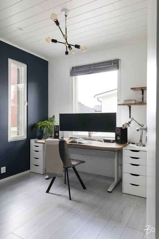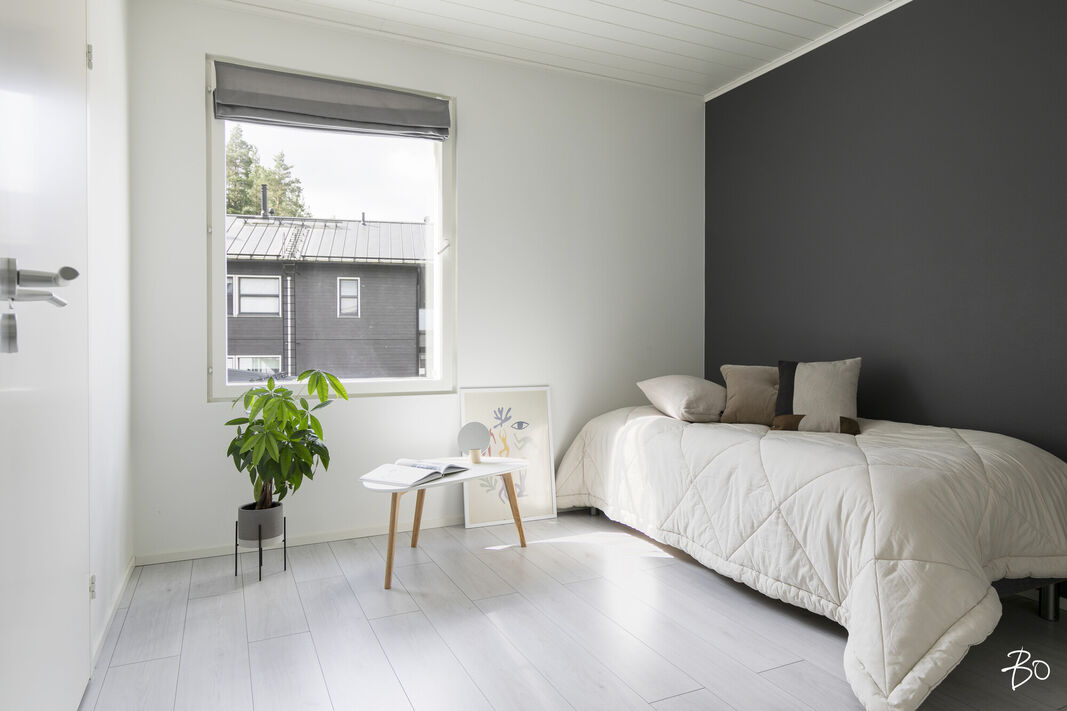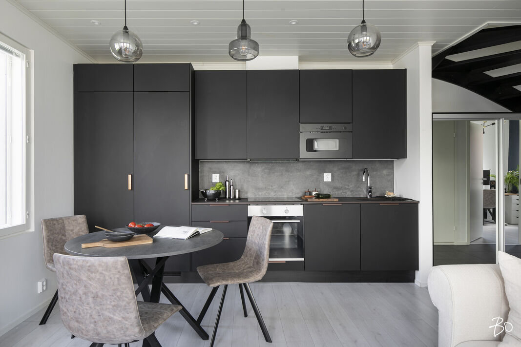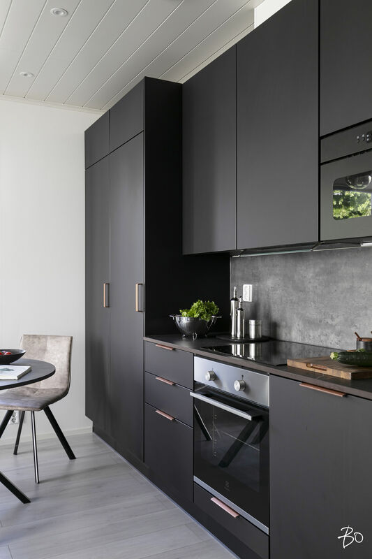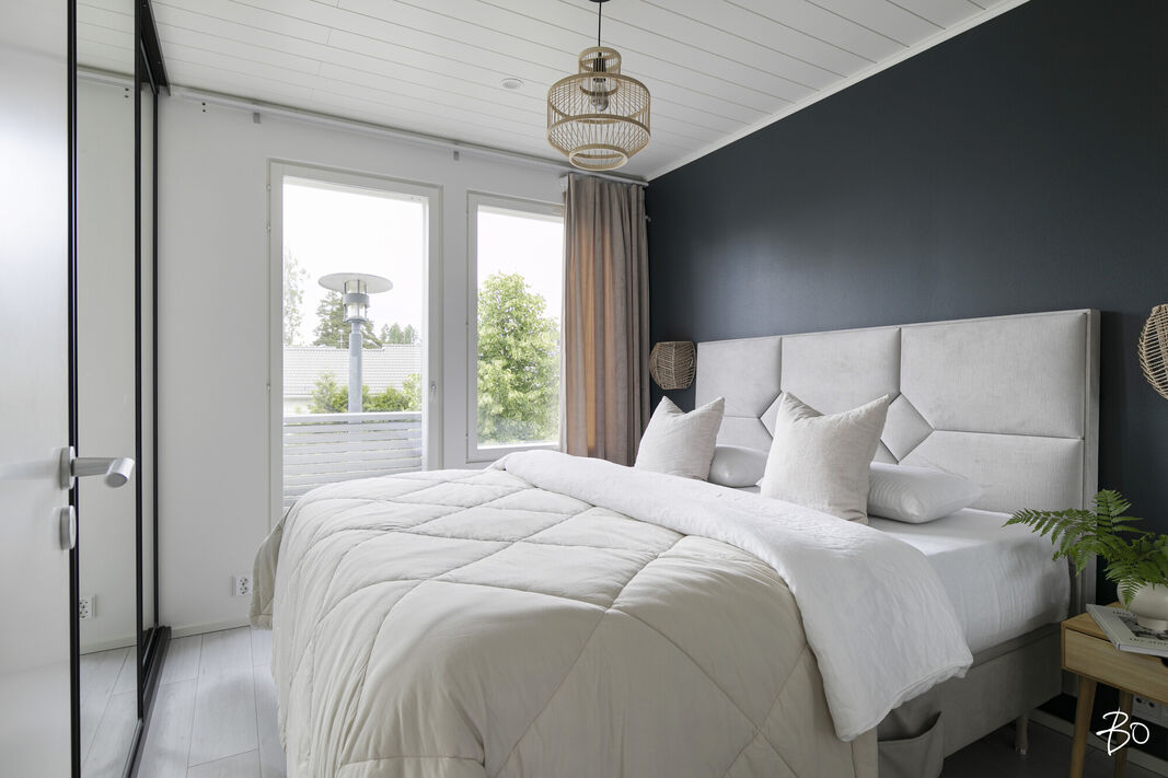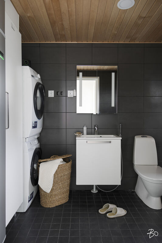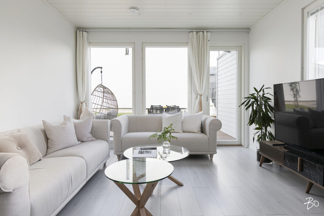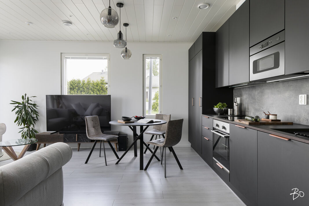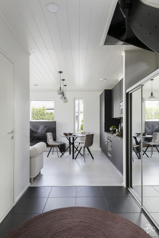 Tämän upean kodin sisätilat hurmaavat mustavalkoisella sisustussävyllä, joka luo tyylikkään ja ajattoman ilmeen. Kodin ehdoton vetonaula on laadukas, tummanpuhuva, kivitasoilla ja huippu kodinkoneilla varustettu Puustellin keittiö. Neliöitään tilavamman tunteen luova pohjaratkaisu käsittää neljä huonetta, keittiön, kaksi kylpyhuonetta sekä saunan. Kodin käytännöllisyyttä ja säilytysratkaisuja helpottaa vaatehuone ja varasto.