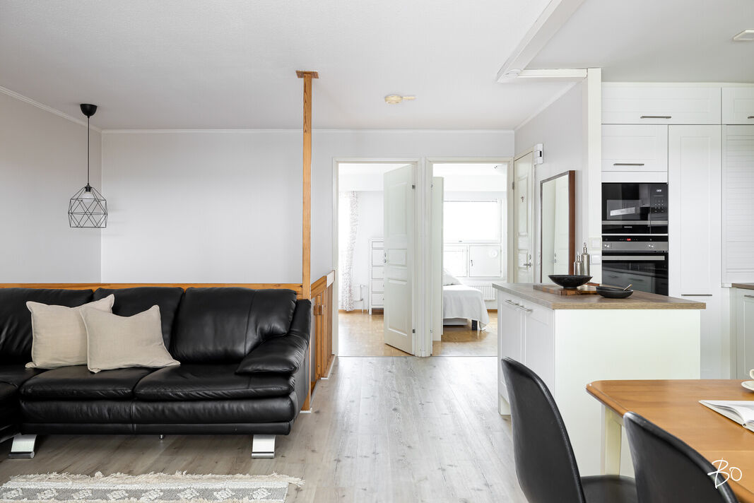 Asunnossa on kolme makuuhuonetta, keittiö, kylpyhuone, sauna, WC, vaatehuone sekä varastohuone, joka on nykyisillä omistajilla jaettuna makuutilaksi ja varastotilaksi. Vuonna 2021 uudistettu keittiö on varustettu moderneilla kodinkoneilla ja laadukkailla materiaaleilla, jotka tekevät ruoanlaitosta nautinnollista. Myös hiljattain toteutettu putkiremontti tuo mielenrauhaa ja varmuutta tuleville vuosille.