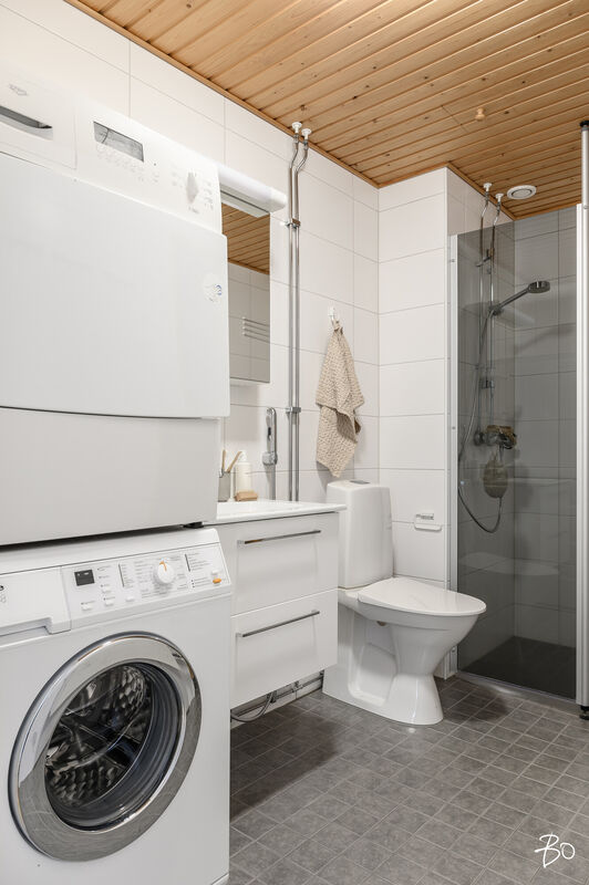 Pyykinpesukone ja kuivausrumpu sisältyvät kauppaan.