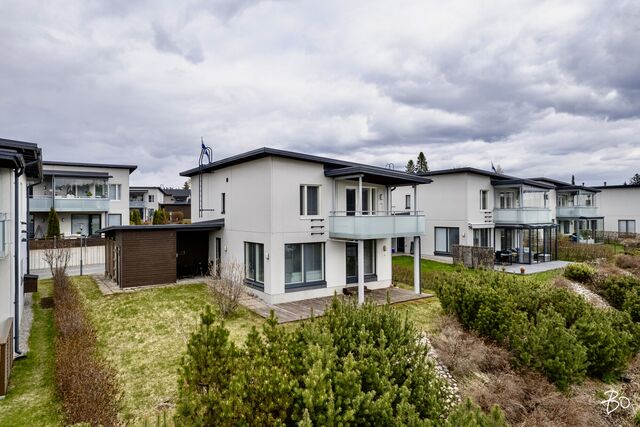 Asunnon sisätilat ovat suunniteltu korostamaan kauniita vaaleita sisustussävyjä, jotka luovat tilaan avaruutta ja valoisuutta. Asunnon tyyli on järkevästi viimeistelty, ja huoneet ovat tilavat sekä toimivat. Käytännöllinen keittiö avautuu oleskelutilaan, jossa perhe ja ystävät voivat kokoontua nauttimaan yhdessä olosta. Kodin sauna tarjoaa rauhallisen paikan rentoutumiseen arjen kiireiden keskellä. Erillinen kodinhoitohuone helpottaa perheen pyykkihuoltoa.