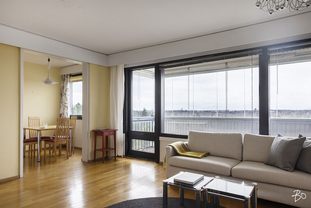Nyt tarjolla valoisa ja upea näköalahuoneisto ylimmästä kahdeksannesta kerroksesta. Asunto on hyvin siistikuntoinen ja pohjaratkaisu on selkeä. Olohuoneesta on käynti ruokailutilaan ja keittiöön. Tilava lasitettu parveke, jolta mahtavat näkymät niin pitkälle kuin silmä kantaa kruunaa tämän mahtavan asunnon. Asumismukavuutta lisää vielä erillinen wc. Taloyhtiö on hyvässä kunnossa, esimerkiksi putkiremontti on koko yhtiössä tehty 2020-2022.