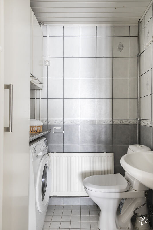 Varustus: pesukone, pesukoneliitäntä, peilikaappi