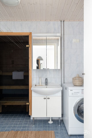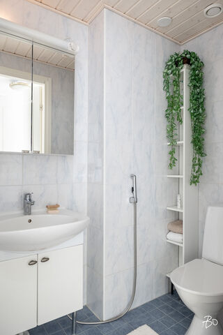 Säilytystilaa tässä kodissa on kivasti. Molemmissa makuuhuoneissa on omat vaatehuoneet ja lisäksi huoneistolla on oma ulkovarasto heti sisäänkäynnin vieressä. Lisäksi väestösuojassa on lämmin varastotila sekä taloyhtiöllä yhteinen urheilutavara- ja pyörävarasto.