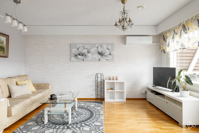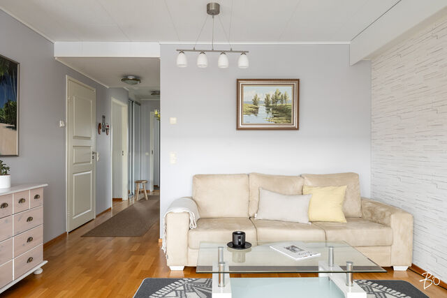 Tässä kodikkaassa päätyhuoneistossa on näppärä pohjaratkaisu joka antaa mahdollisuuden sisustaa tilat juuri omien tarpeidesi mukaan.