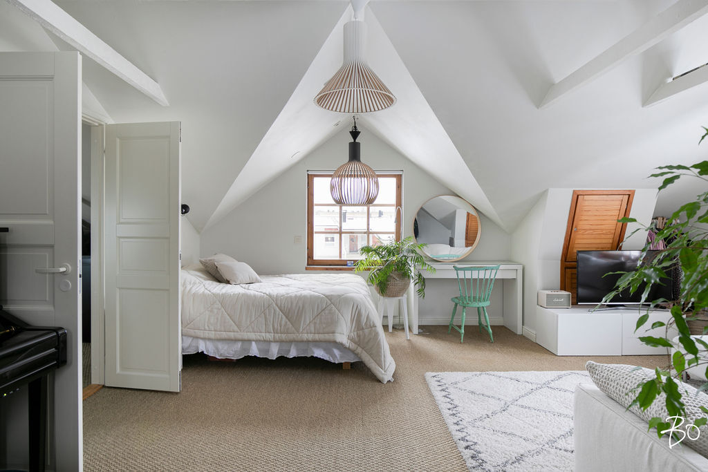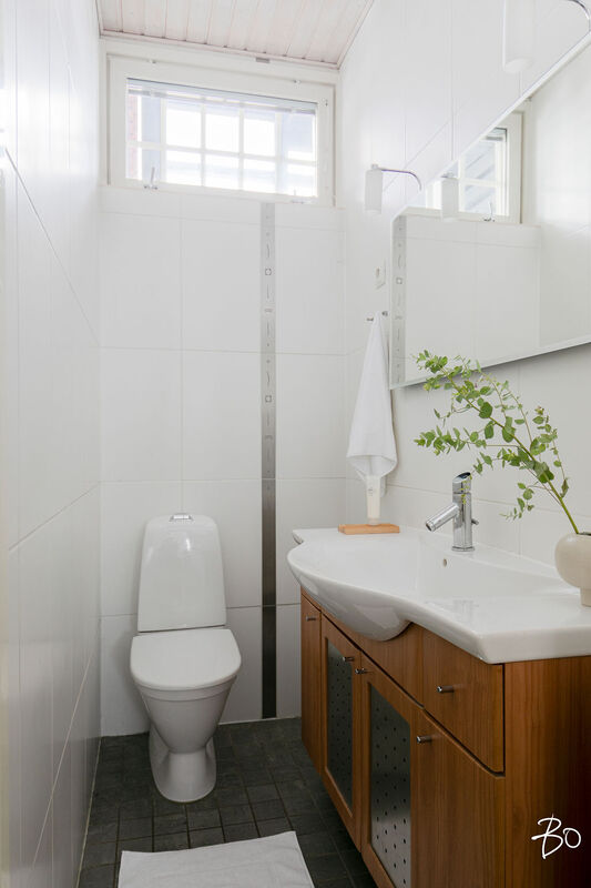 Tämä uniikki koti tarjoaa tilaa suuremmallekin perheelle, sillä talossa on kahdeksan huonetta, moderni keittiö ja lisäksi erillinen sivurakennus varasto- ja toimistotiloineen. Talon sisätiloissa korostuvat korkeat katot ja skandinaavisen sekä industriaalisen tyylin taitava yhdistelmä.