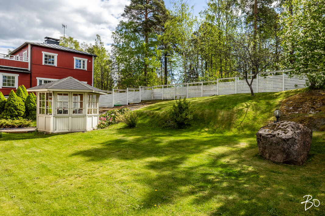 Talo sijaitsee omalla tontilla, johon kuuluu vehreä ja hoidettu piha-alue sekä viihtyisä oleskelualue. Hyvin suunnitellulla piha-alueella on tilaa leikkiä ja pelata.