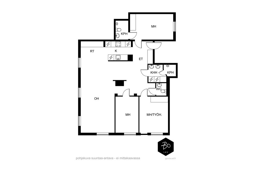 Tämä ainutlaatuinen 4 huoneen avokeittiöllä varustettu asunto on täysin uusittu vuonna 2016 vanhasta kyläkaupasta tarjoten nykyaikaista asumismukavuutta. Avokeittiö on varustettu laadukkailla kodinkoneilla ja antaa tilan tuntua koko huoneistoon. Huoneistossa on kaksi kylpyhuonetta, joista toisessa on myös kodinhoitotila, sekä erillinen wc, mikä tekee arjesta sujuvaa suuremmallekin perheelle. Isot ikkunat tuovat runsaasti luonnonvaloa ja luovat miellyttävää tunnelmaa kaikkiin asuintiloihin.