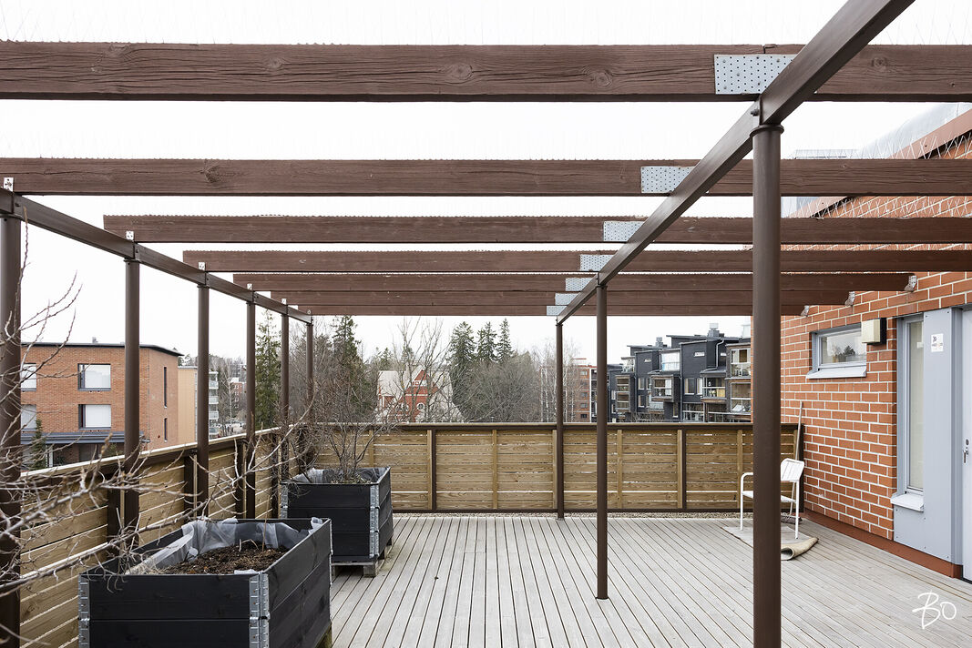 Taloyhtiöllä on asukkaiden käytössä hieno kattoterassi, kerhohuone sekä sauna tilat.