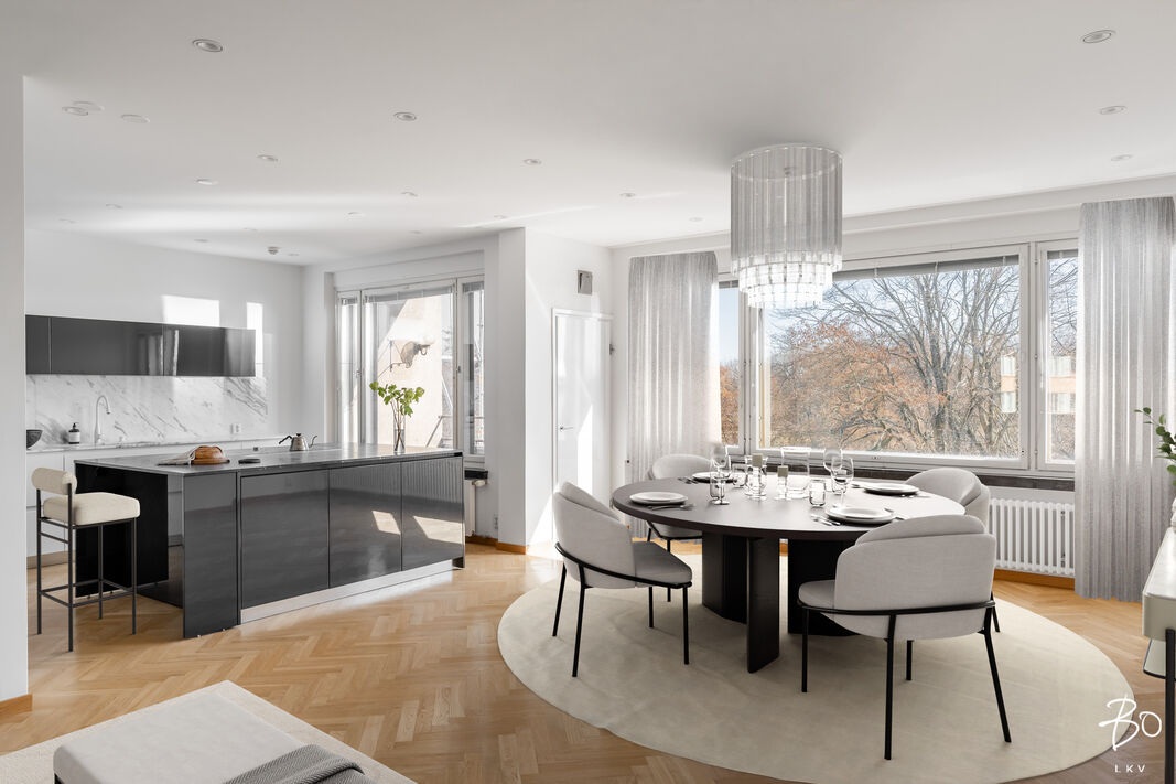 Tervetuloa tutustumaan tähän upeaan kotiin, joka sijaitsee Kaivopuiston reunalla, hissitalon viidennessä kerroksessa. Laadukkaasti toteutetulla remontilla on luotu arvokasta tunnelmaa valoisaan, läpitalon huoneistoon. Huolella valitut materiaalit ja viimeistellyt pinnat tuovat arvokkuutta ja harmoniaa jokaiseen huoneeseen.