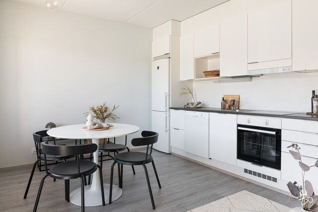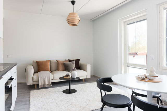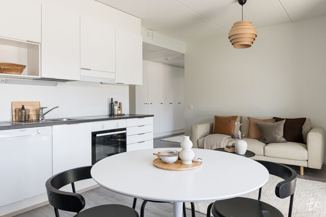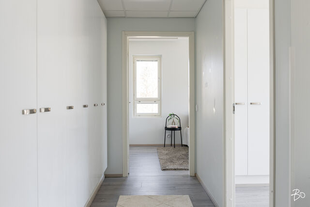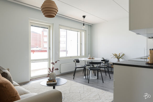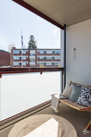 Tämä kaunis koti suorastaan tulvii valoa. Raikkaan vaaleat sisustussävyt luovat tilan tuntua ja antavat mahdollisuuden monenlaisille sisustuksille. Olohuone ja keittiö ovat samaa tilaa, mikä tekee arjesta sujuvaa ja mukavaa. Lasitettu parveke lisää entisestään asumisen iloa. Avaimet saat kaupanteossa ja muuttamaan pääset heti. Mitä muuta vielä voit toivoa?
