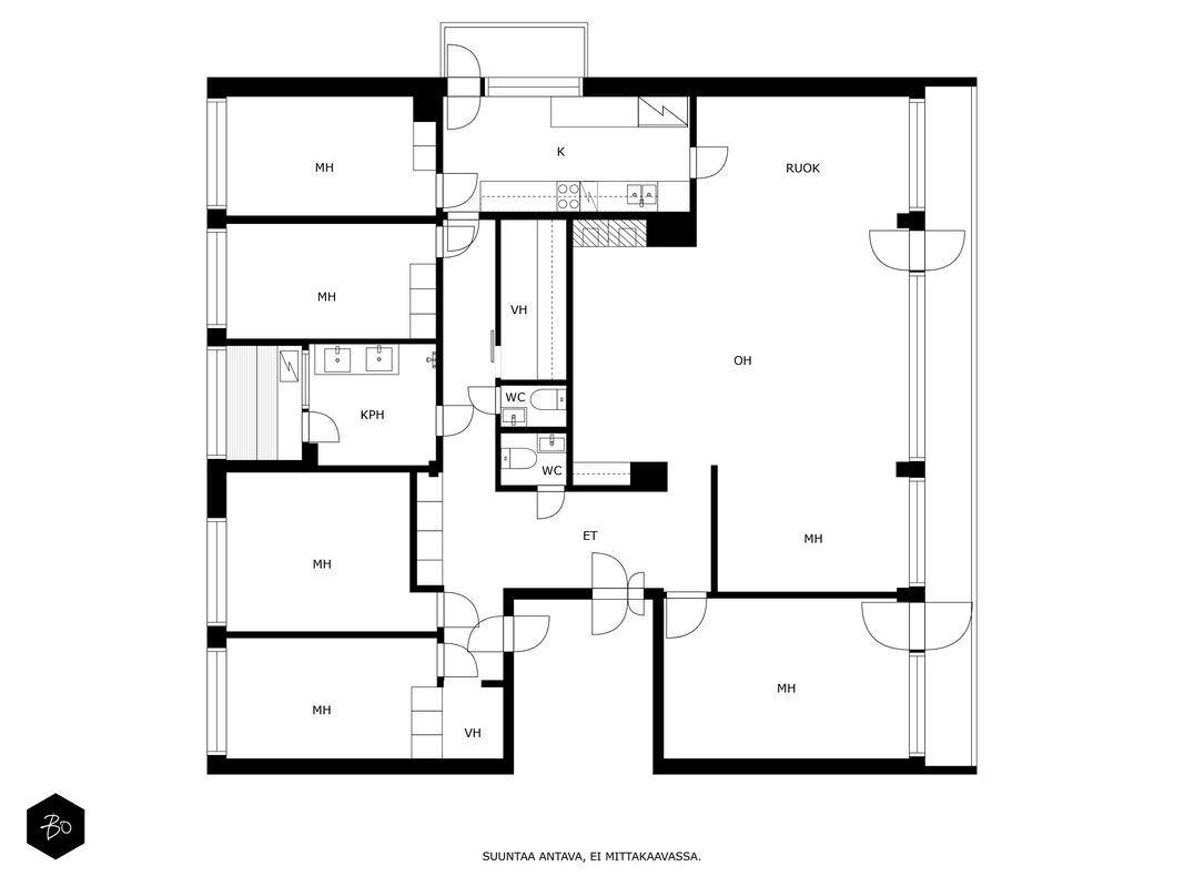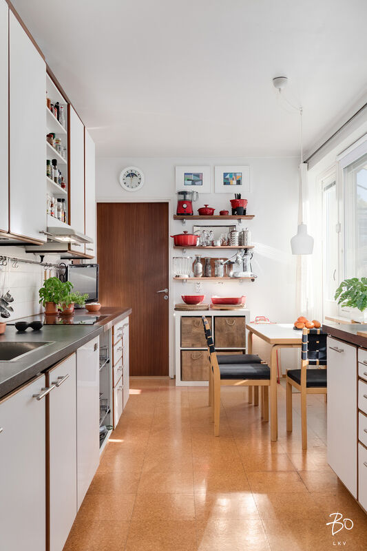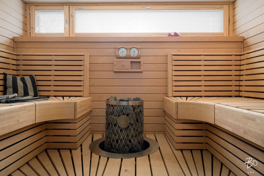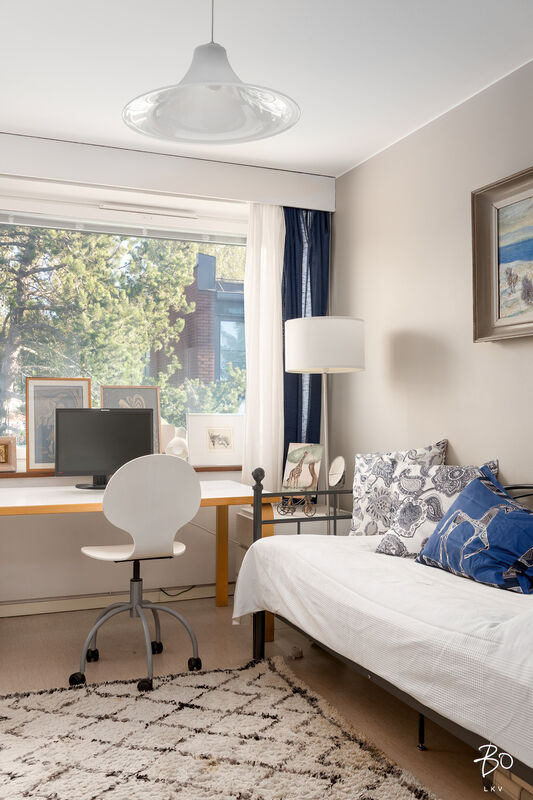 Ylellinen sauna, tilava kylpyhuone, kaksi erillistä wc:tä ja reilut kaappi- ja vaatehuonetilat helpottavat arkea. Perheellinen ostaja arvostaa asunnon viittä makuuhuonetta, jotka tarjoavat tilaa koko porukan eri tarpeisiin.