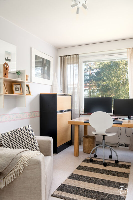 Ostajalle on tarjolla eri osakekirjoilla pohjakerroksen työhuone, jossa on kylpyhuone ja sisäänkäynnit sekä porraskäytävästä että pihalta loistava ratkaisu etätyöläiselle tai yrittäjälle.