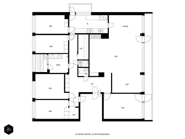 - koko huoneiston levyinen lasitettu länteen merelle, lounaaseen (ilta- ja iltapäiväaurinko)