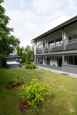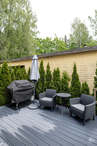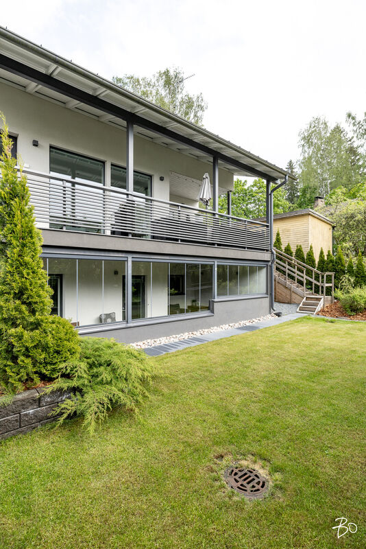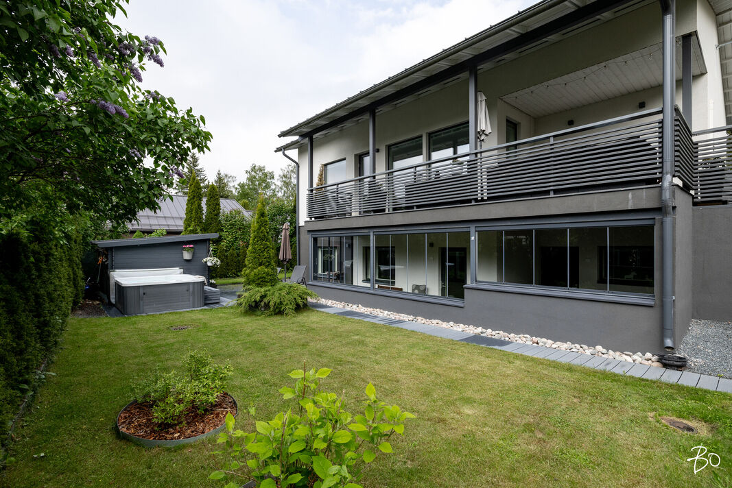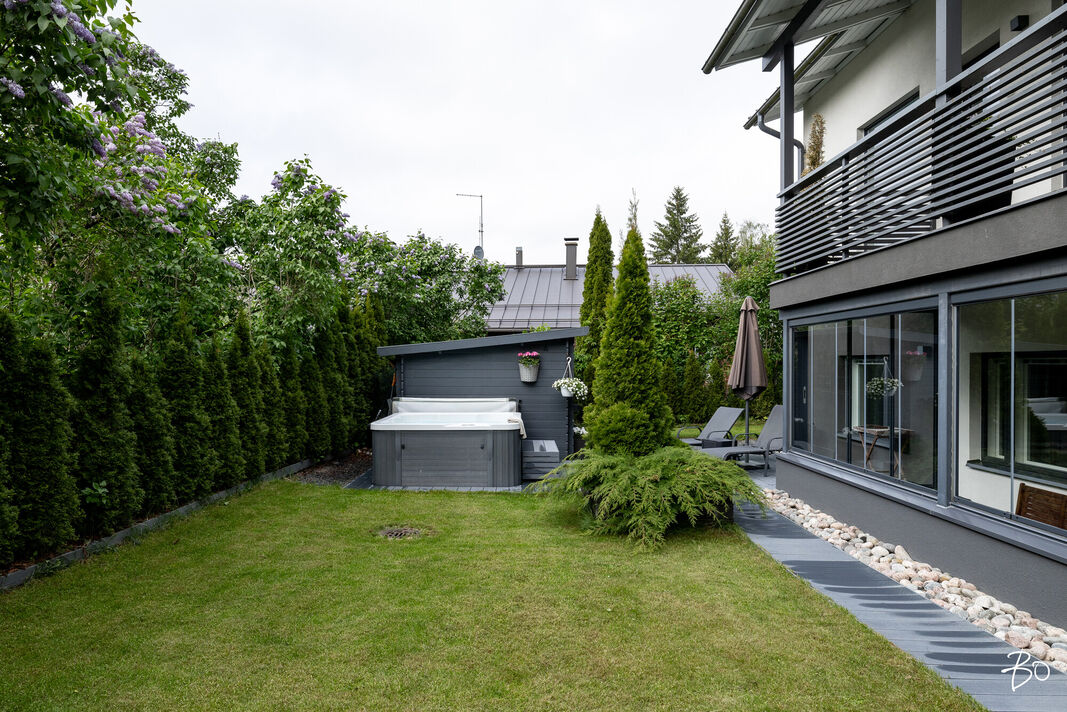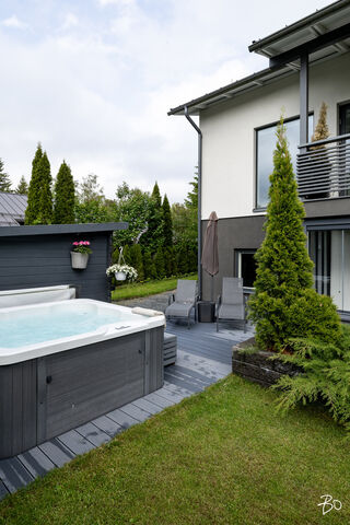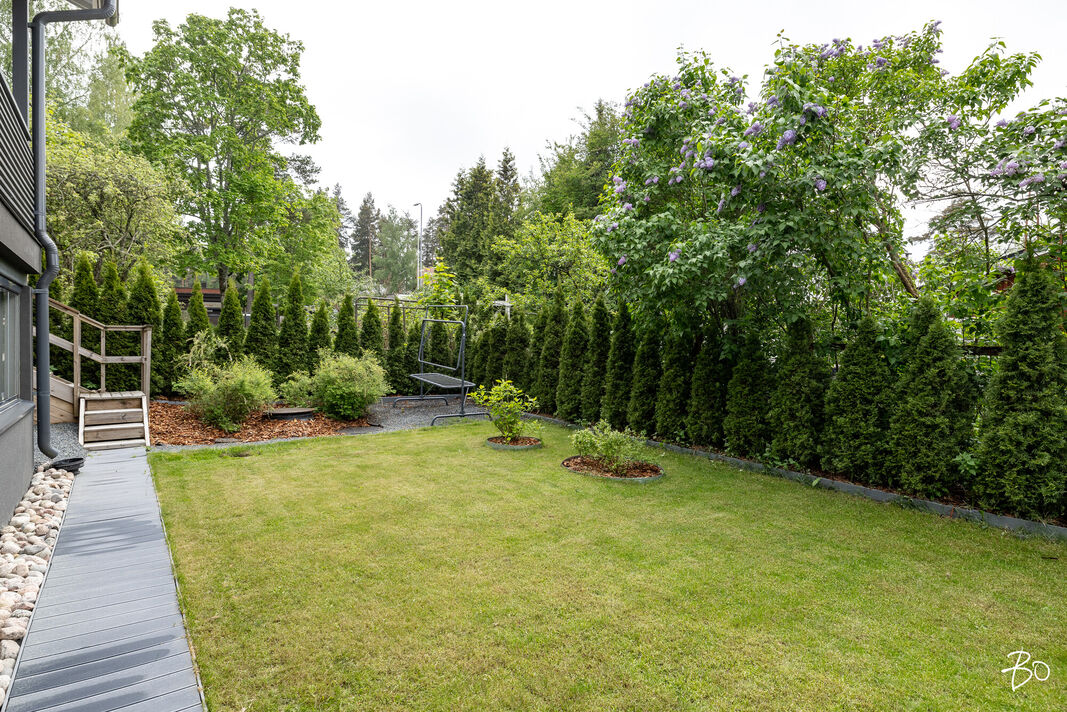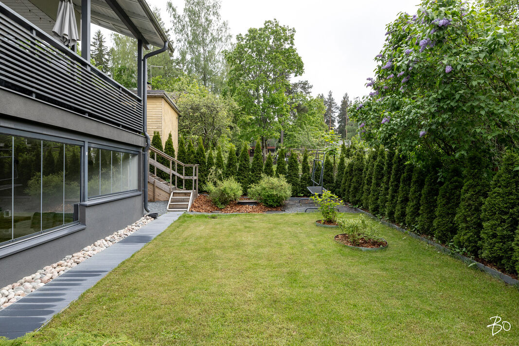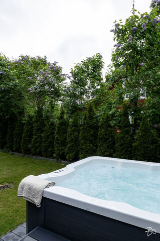 Vihreä suojaisa piha tarjoaa myös erinomaiset puitteet kesäpäivien viettoon, ja poreamme tuo luksusta arkeen. Pihalta löytyy myös erillinen vaja ulkotarvikkeiden varastointiin. Lämmin autotalli tarjoaa myös lisätilaa varastointiin.