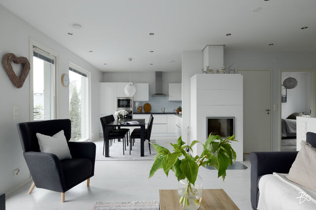 Tämä vuonna 2015 valmistunut talo tarjoaa erinomaiset puitteet perheen arkeen: riittävästi erillisiä huoneita ja yhteistä avaraa tilaa, runsaasti säilytystilaa ja toimivat kodinhoitotilat sekä oma miellyttävä piha, ja lisäksi hyvät ulkoilu- ja harrastusmahdollisuudet sekä liikenneyhteydet löytyvät aivan lähettyviltä.