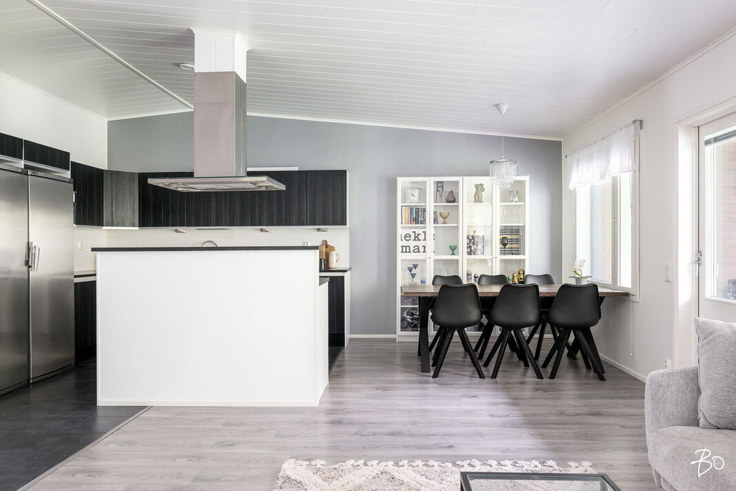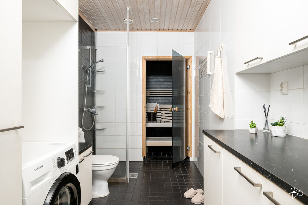 Tilava rivitaloasunto on varusteltu laadukkaasti ja tarjoaa loistavat puitteet niin arkeen kuin juhlaan. Avokeittiö yhdistyy saumattomasti avaraan olohuoneeseen, luoden ihanteellisen tilan seurustelulle ja yhdessäololle. Kolme makuuhuonetta tarjoavat omaa rauhaa ja tilan tuntua, kun taas sauna tarjoaa rentoutumishetkiä arjen keskellä.
