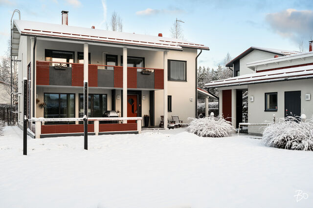 Tervetuloa tutustumaan tähän viehättävään ja hyvin pidettyyn omakotitaloon Vuoluraudantiellä, Metsokankaan rauhallisella ja perheystävällisellä alueella! Kahteen tasoon rakennettu, vuonna 2010 valmistunut kivitalo hurmaa ajattomilla mustavalkoisilla sisustussävyillään ja laadukkailla, aikaa kestävillä materiaaleillaan.
