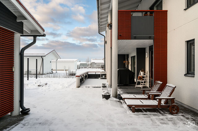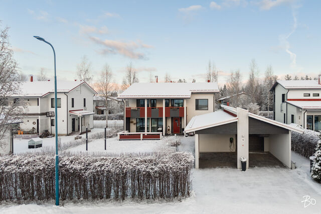 Kivirakenteet ja peltikatto varmistavat rakennuksen pitkäikäisyyden ja helppohoitoisuuden vuosikymmeniksi eteenpäin. Energiatehokas kaukolämpö ja vesikiertoinen lattialämmitys tekevät asumisesta miellyttävää ja kustannuksiltaan maltillista ympäri vuoden. Etätöitä tekeville kodista löytyy valokuituyhteys, johon saa hankittua jopa 1000M nopeuden. Pihapiiri on huolella suunniteltu: suuri terassi houkuttelee viettämään aikaa grillaten ja rentoutuen omassa rauhassa. Yläkerran parveke tarjoaa vilvoittelupaikan saunomisen jälkeen. Lämmitettävä ja eristetty autotalli tarjoaa autolle suojaisan säilytyspaikan tai tilan harrastuksillesi, ja autokatos tuo lisämukavuutta arkeen. Hyvin hoidettu piha ja laadukkaat materiaalit kertovat kiinteistön erinomaisesta huolenpidosta.