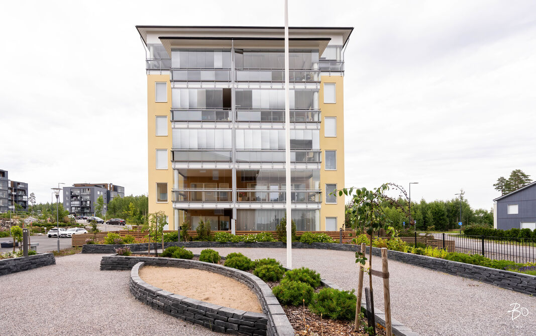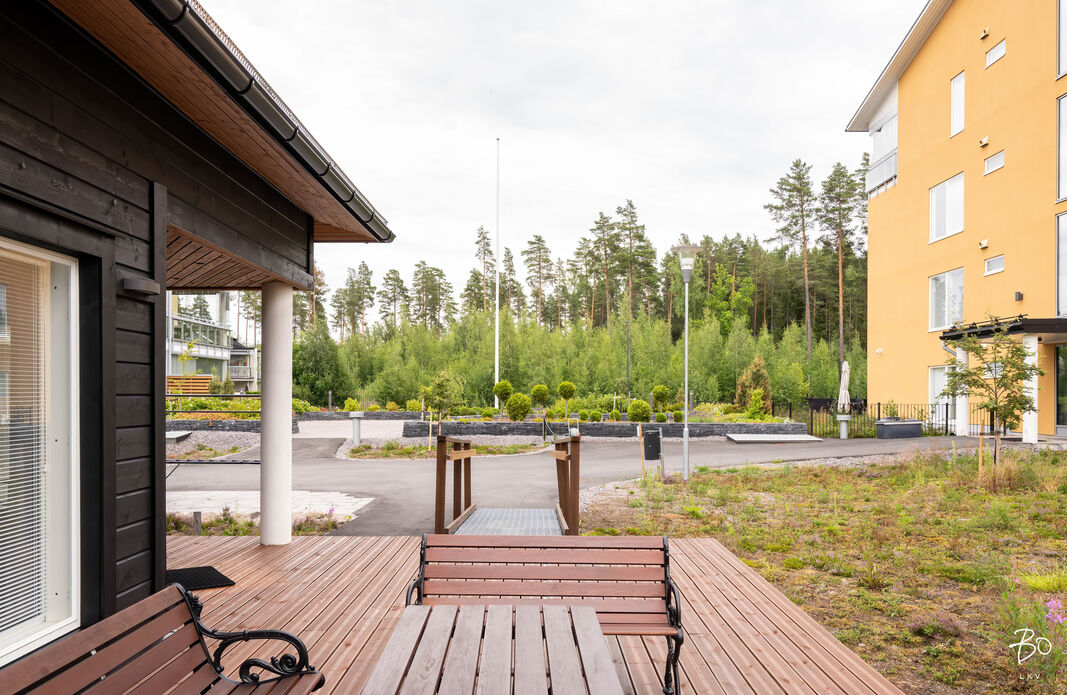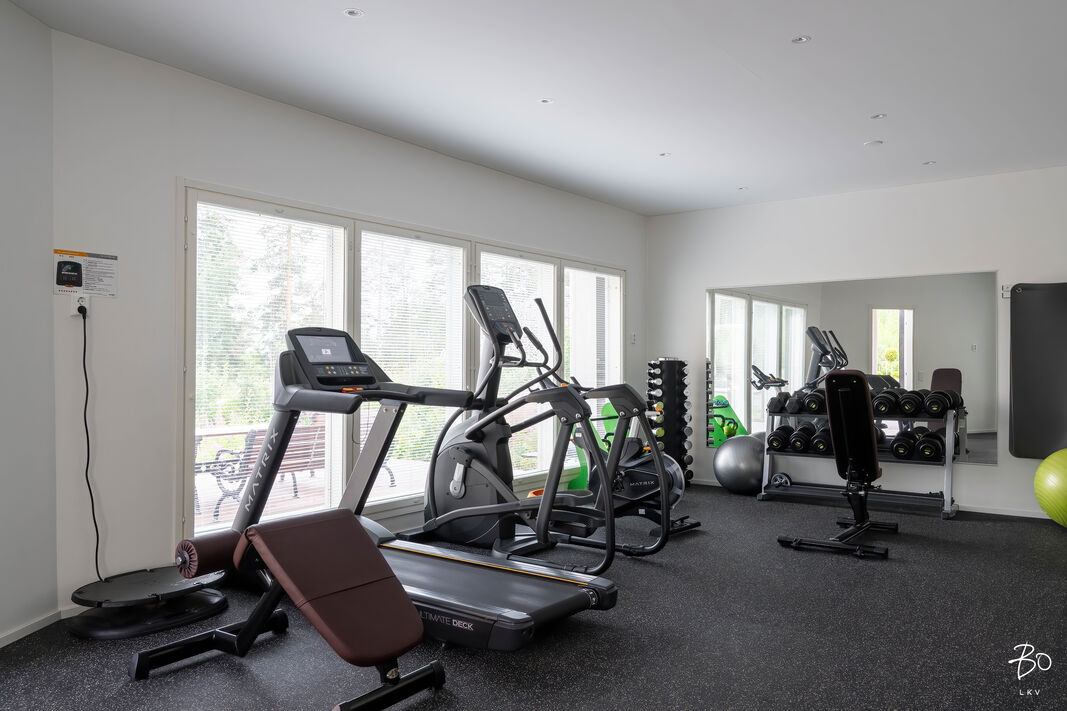Asumismukavuutta yhtiössä tuovat oma kuntosali saunoineen, autonpesupaikka parkkihallissa sekä koirien ja kurasaappaiden pesupaikka.