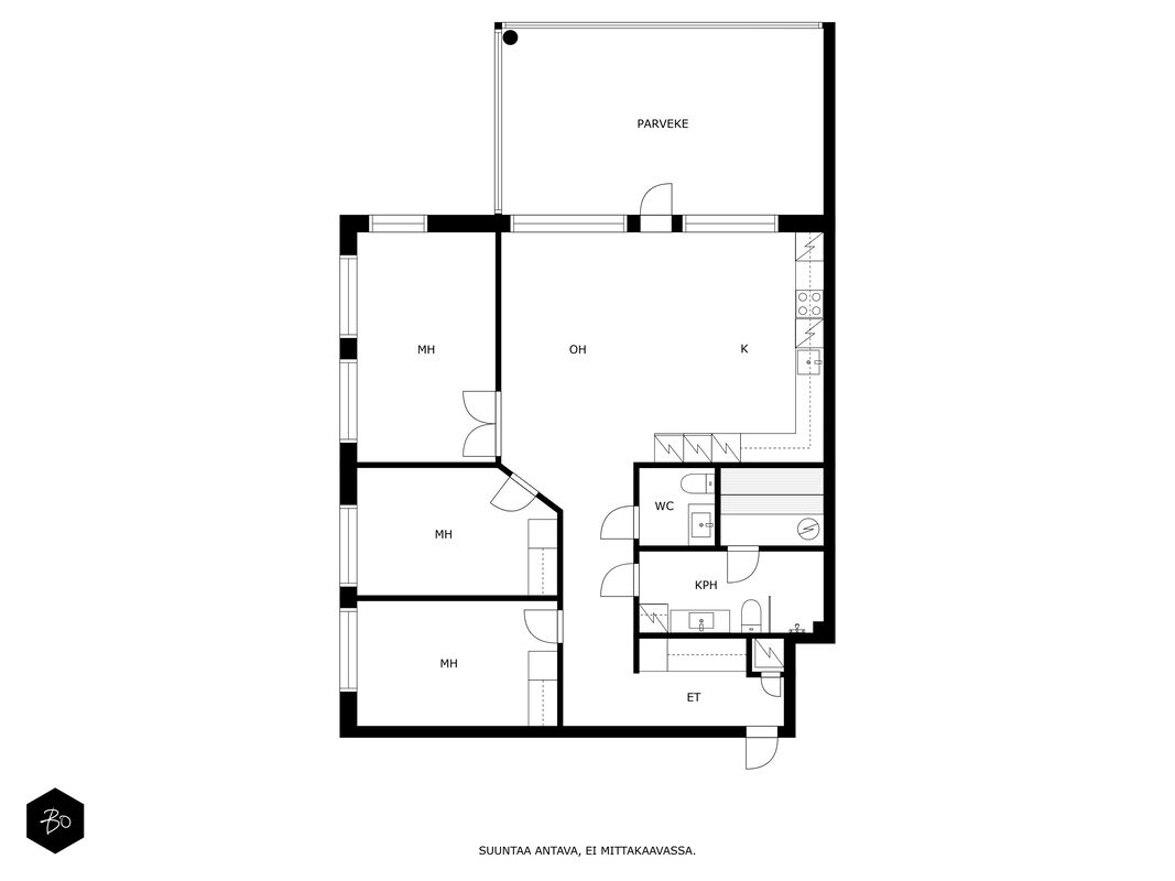 Upea huoneisto hyvin varustellussa taloyhtiössä.