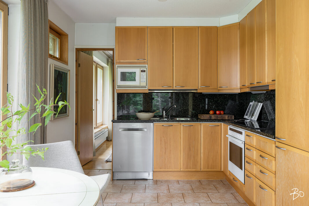Arkea helpottaa kodinhoitohuone sekä hyvät säilytystilat.