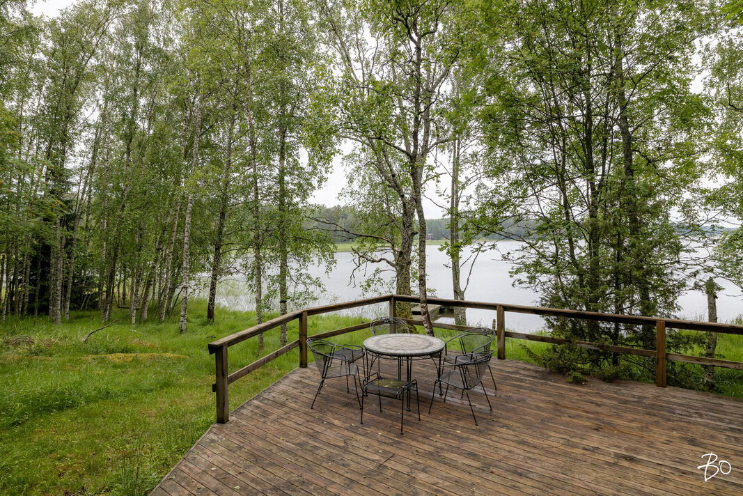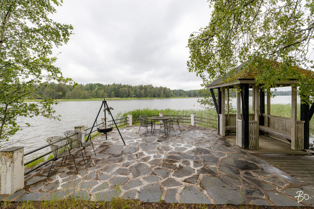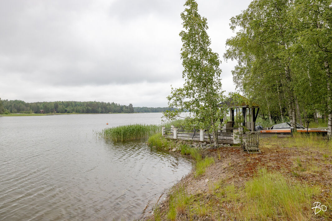 Kiinteistöön kuuluu pitkä rantaviiva. Rannassa on kelohongasta rakennettu savusauna, kaksi laituria ja grillauspaikka.