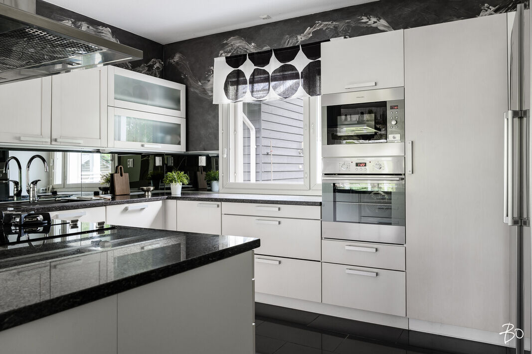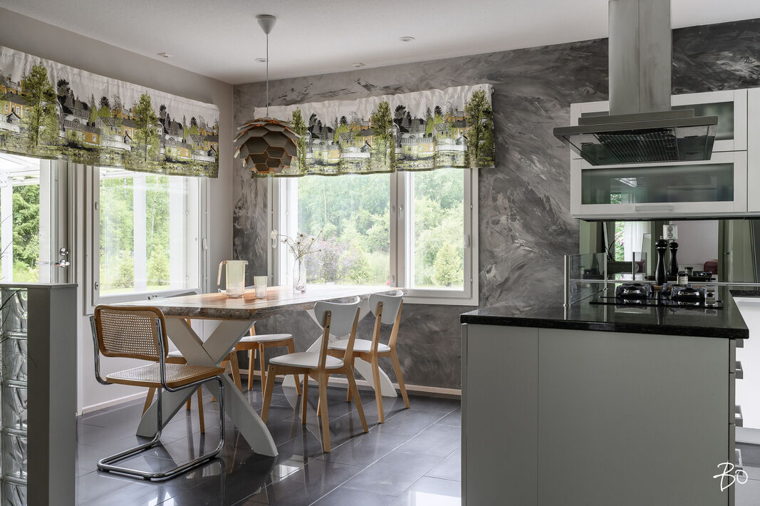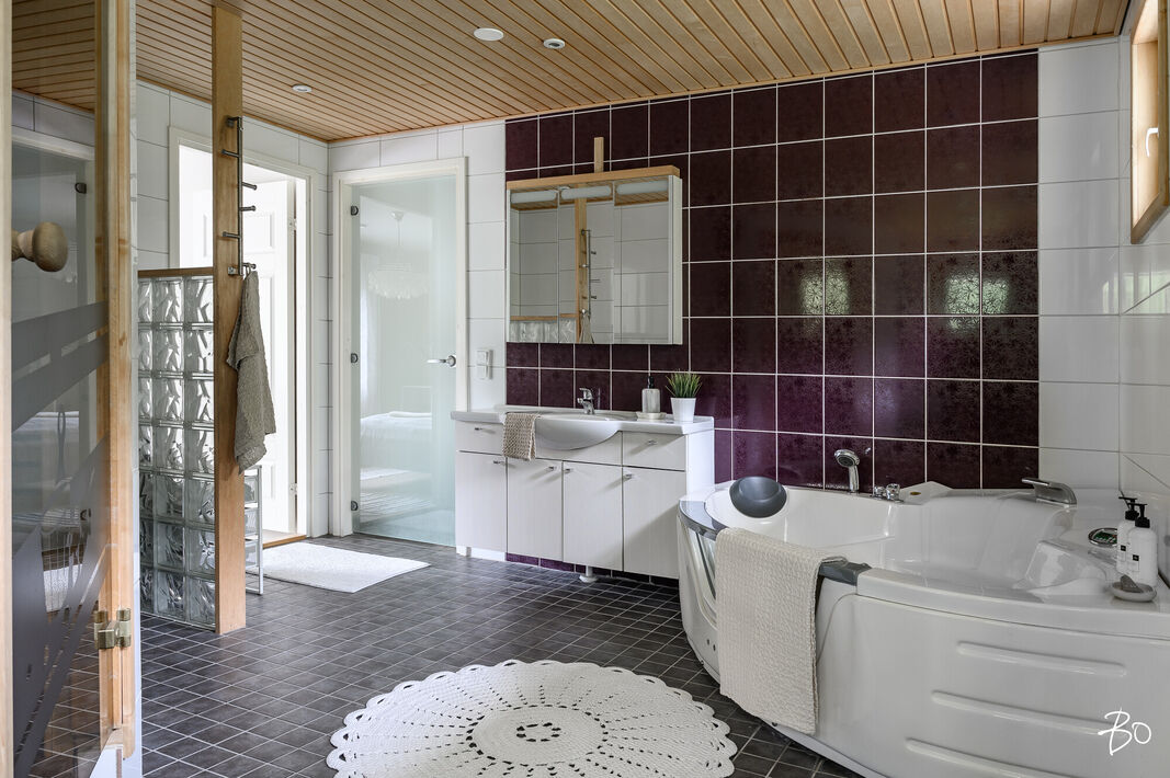 Tämä Maaniityntien päähän vuonna 2011 valmistunut koti hurmaa käytännöllisyydellään sekä upeilla yksityiskohdillaan. Taloon saavutaan laatoitettuun eteiseen ja käytännöllinen laattalattia jatkuu keittiöön asti. Laadukkaasti varustellusta keittiöstä löytyvät esimerkiksi kivitasot ja sekä kaasu- että keraaminen liesi. Upotettu olohuone yhdistettynä upeaan huonekorkeuteen ja rauhoittaviin ikkunanäkymiin luo ihastuttavan tilan yhdessä oleskeluun. Makuuhuoneita on kolme kappaletta, joista päämakuuhuoneesta on suora kulku kylpyhuoneeseen. Makuuhuoneiden lisäksi kodissa on tilava liukuovellinen parvi. Kylpyhuoneen yhteydessä on saunan lisäksi poreamme.