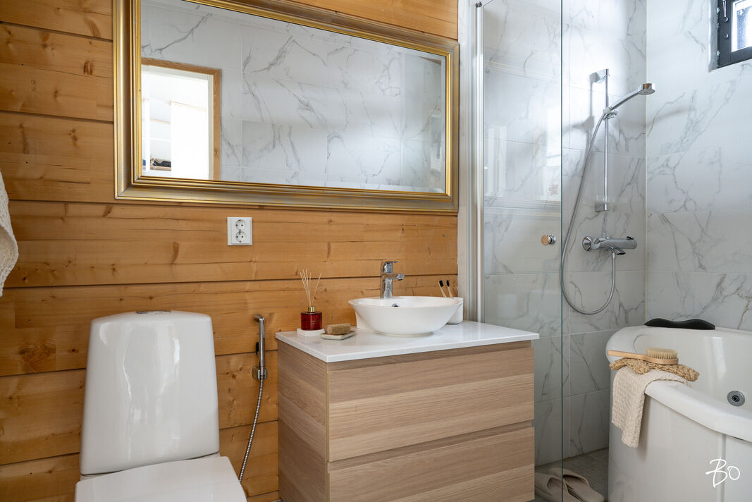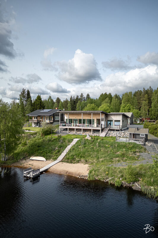 Päärakennuksesta huokuu rauhallisuus ja avaruus. Reilu 50 m2 kokoisesta olohuoneesta, ruokailutilasta ja keittiöstä avautuu niin ikään näkymät luonnon kauniisiin maisemiin Kotajärvelle. Päärakennuksessa on kaksi makuuhuonetta, kylpyhuone poreammeella sekä erillinen wc/kodinhoidon tilat. Lämmitysmuotona on ekologinen maalämpö. Kaunis hirsiseinä on nähtävillä kodin jokaisessa huoneessa. Olohuoneesta on kulku katetulle ja lasitetulle reilun 60 m2 kokoiselle terassille. Rannan läheisyydessä on perinteinen puulla lämpenevä rantasauna, jossa on myös terassialue. rantasaunaa on kunnostettu mm. uudella pohjarakenteella.