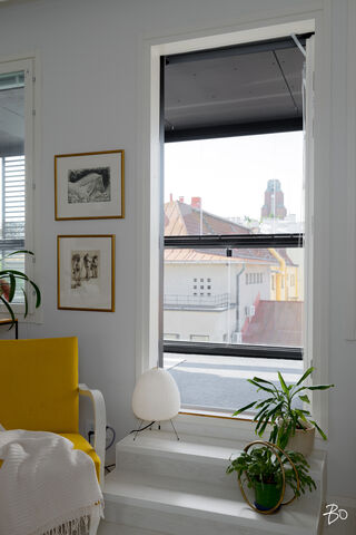 Täällä voit nauttia aamukahvit auringossa, illalliset ilta-auringossa tai järjestää rentoja illanviettoja ystävien kanssa ympäri vuoden. Vaaleat pinnat, ajattomat materiaalit ja avarat näkymät tekevät tästä huoneistosta erityisen viihtyisän. Ylimmän kerroksen rauha yhdistettynä hissitalon helppouteen takaa kodin, jossa viihdyt pitkään.