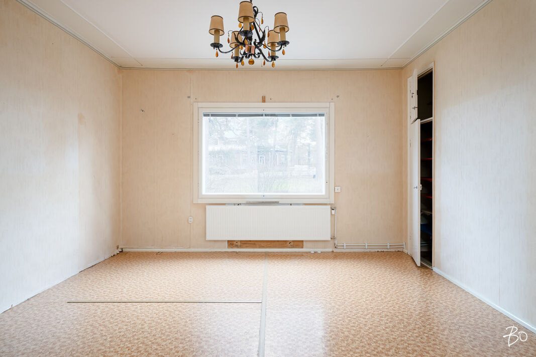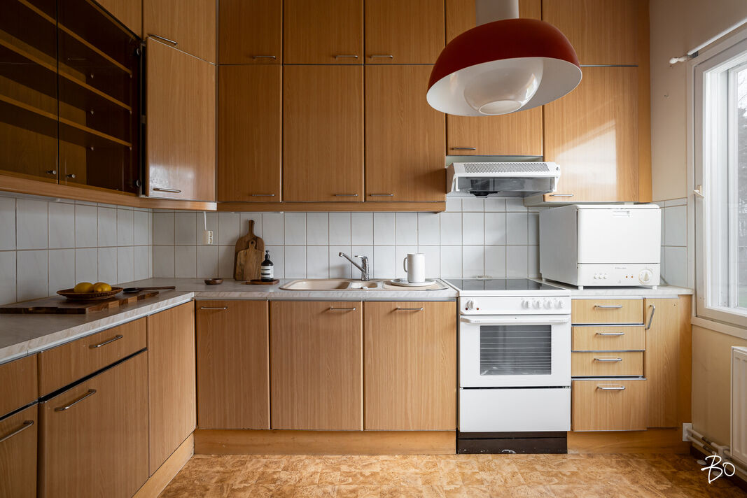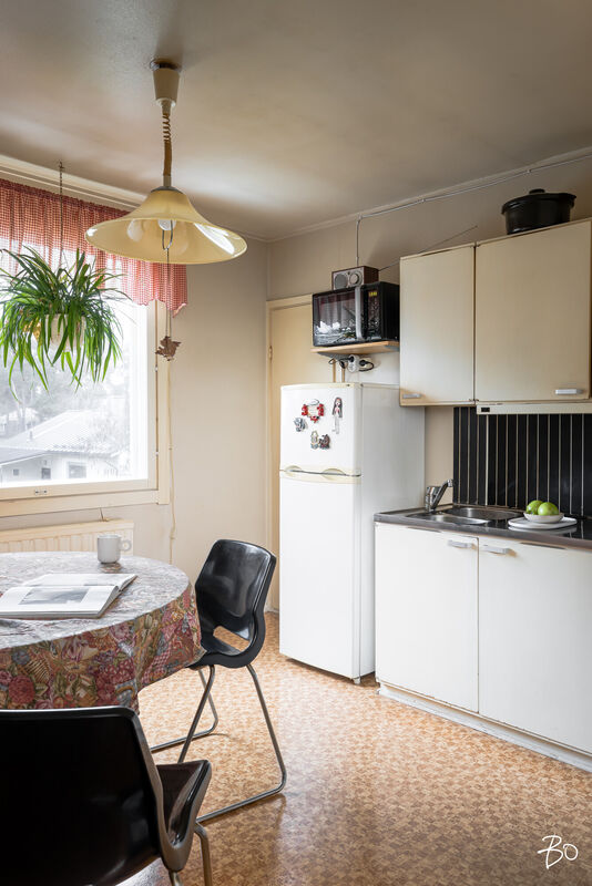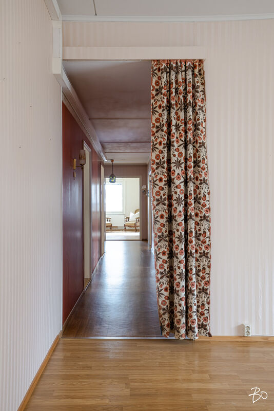 Makuuhuoneissa muovimatto, keittiössä ja apukeittiössä muovimatto.