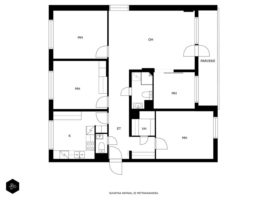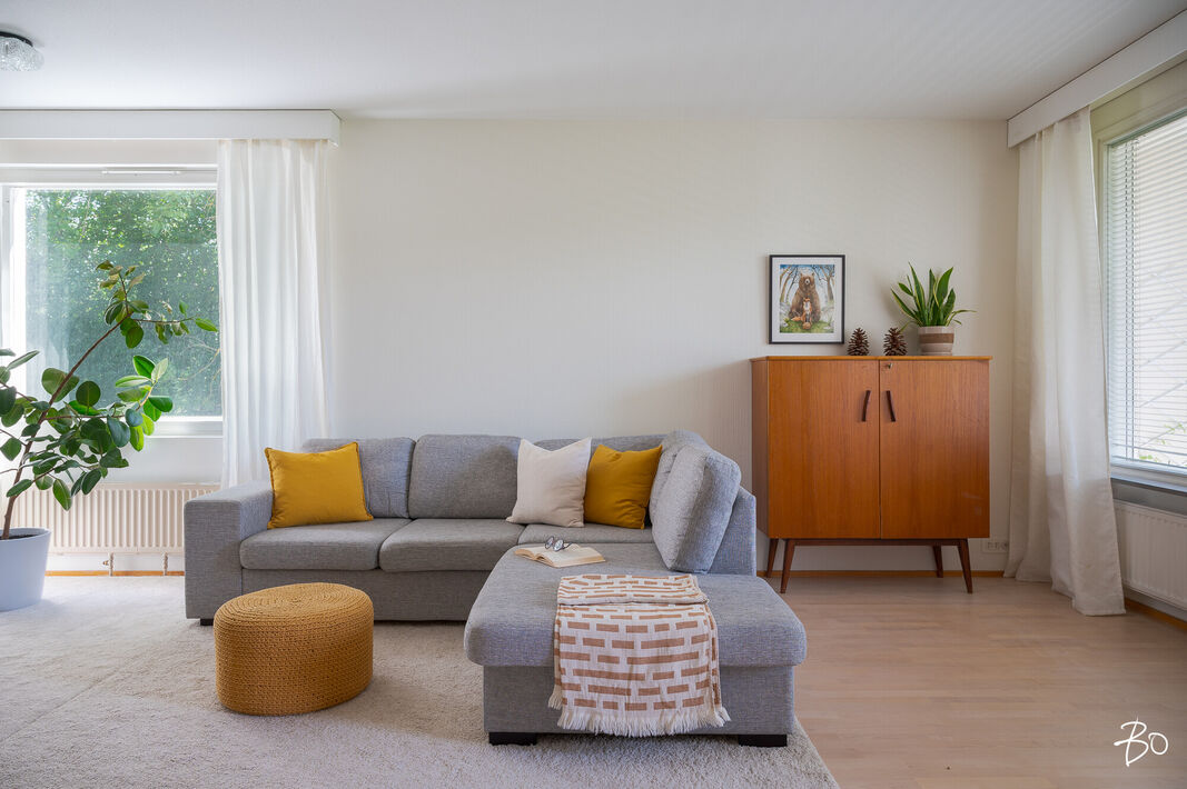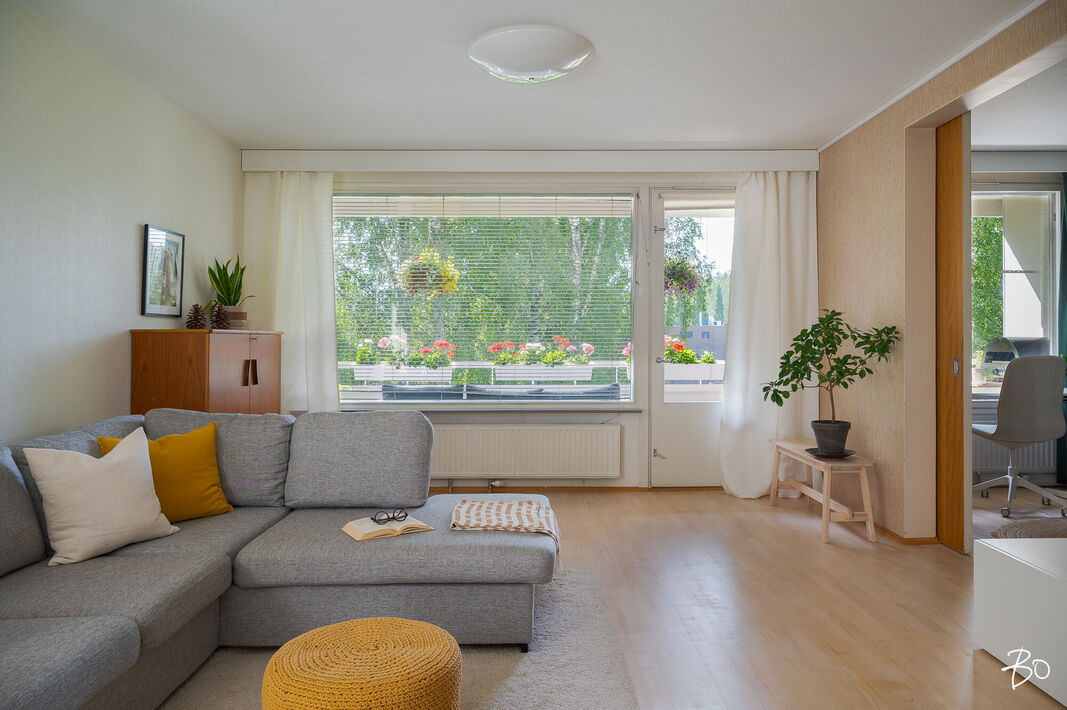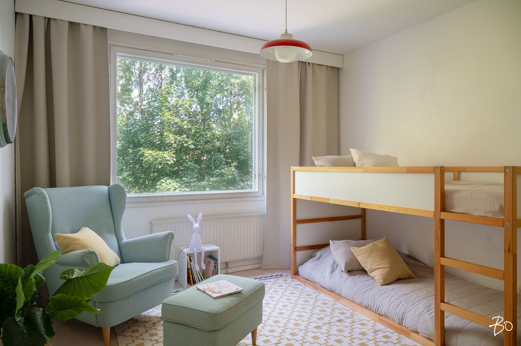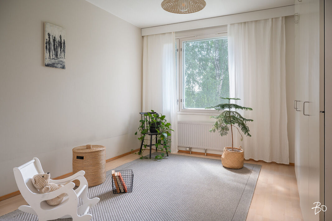 Asunnossa on neljä reilunkokoista makuuhuonetta, joissa kaikissa on hyvin säilytystilaa. Avarassa ja valoisassa olohuoneessa on tilaa niin oleskeluun kuin yhdessäoloon. Vuonna 2022 uusittu, moderni ja skandinaavinen keittiö on sekä tyylikäs että käytännöllinen. Kylpyhuone on remontoitu laadukkaasti ja asunnossa on lisäksi erillinen wc. Iso vaatehuone tuo arkeen kaivattua säilytystilaa ja sen voi halutessaan muuntaa kodinhoitohuoneeksi. Asunnon pinnat on hiljattain maalattu, ja kaunis parkettilattia on hiottu ja lakattu, joten koti on muuttovalmis ilman remonttihuolia.