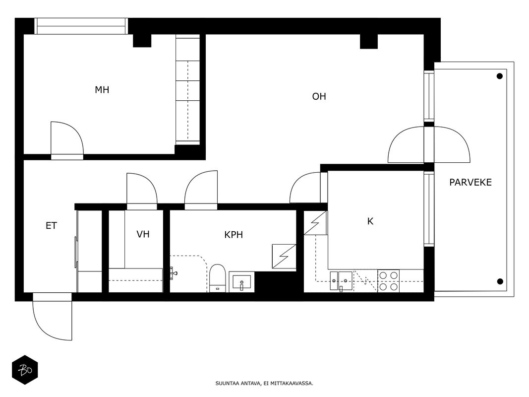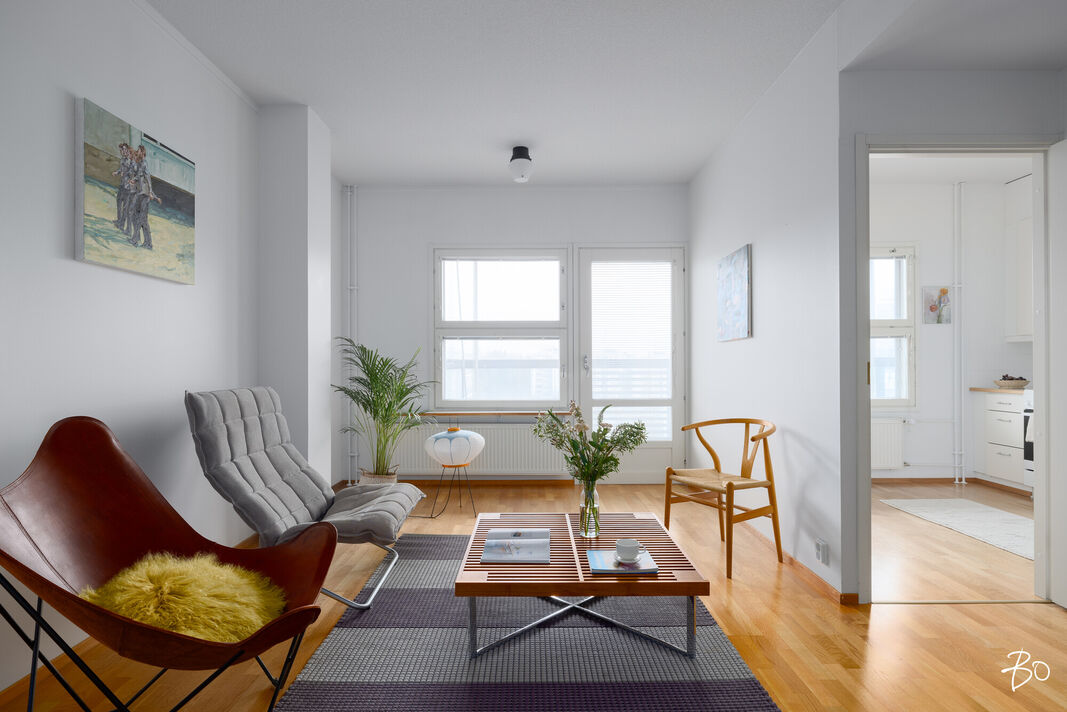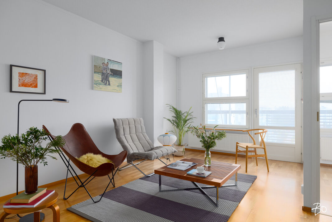 Kodin toimiva pohjaratkaisu luo erinomaiset puitteet asumiselle. Valoisasta olohuoneesta on käynti reilun kokoiselle lasitetulle parvekkeelle. Keittiö on kompakti ja toimiva ja sinne sopii hyvin ruokapöytä. Makuuuhuoneessa on hyvin säilytystilaa, ja reilunkokoiseen kylpyhuoneeseeen mahtuu hyvin pesutornikin. Tyylikäs vaatehuone täydentää kodin säilytysratkaisuja.