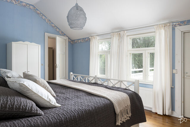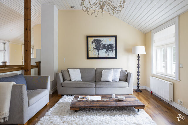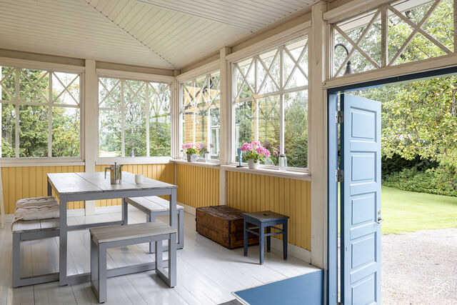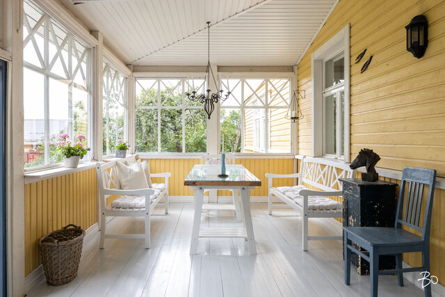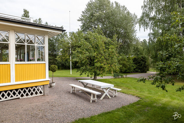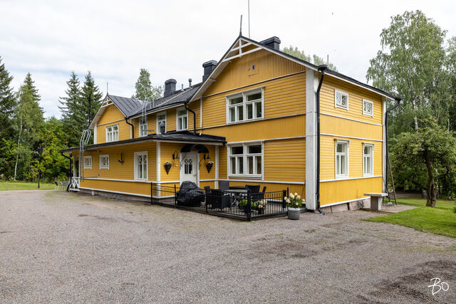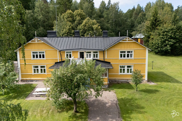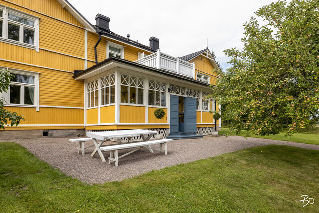 Päätalo on hurmaavan romanttinen ja istuu maisemaan upeasti kullankeltaisena ilmestyksenä omassa yksityisessä pihapiirissään. Talo saneerattiin vuonna 2002 ja modernisoitiin tekniikaltaan, mutta kunnioitettiin talon alkuperäistä tyyliä. Huoneet ovat todella avaria, valoisia ja korkeita. Alkuperäiset kakluunit ja pystyuunit kunnostettiin ja toimivat tänäkin päivänä talvisin antamaan tunnelmallista lämpöä taloon. Energiankulutus on hyvinkin kohtuullista, koska talo eristettiin hyvin (selluvilla) ja ikkunat teetettiin mittojen mukaan alkuperäisellä ikkunajaolla. Talo liitettiin maalämpöön v. 2024.