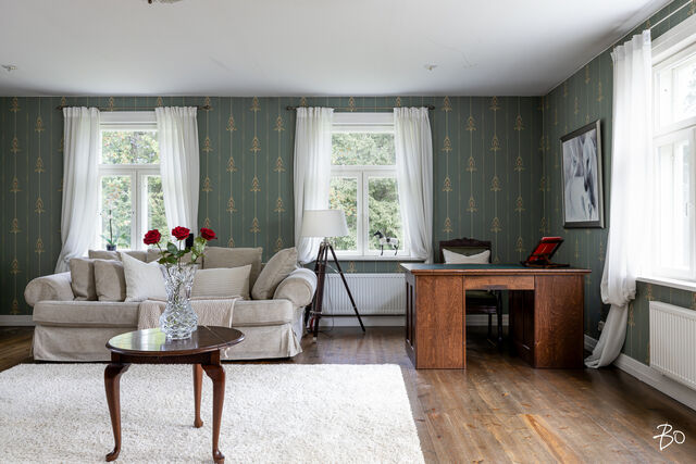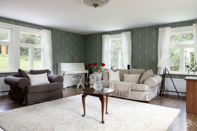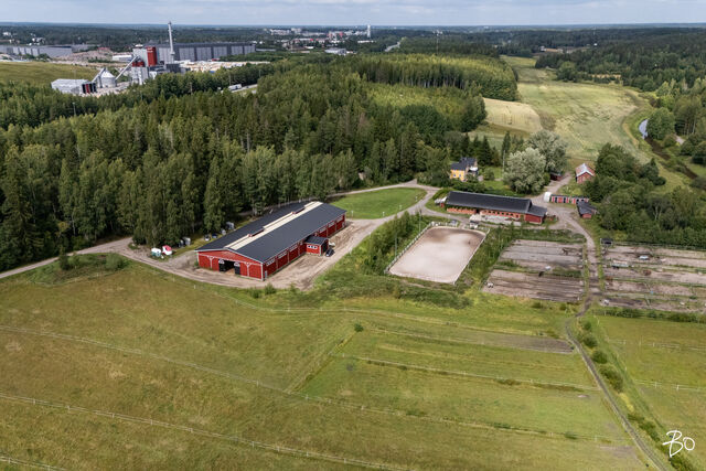 Tämä lähes 4 hehtaarin tila pitää sisällään ihastuttavan 1900 luvun kartanohenkeä uhkuvan kaksikerroksisen ja yli 300 neliöisen talon nurmikenttineen ja puutarhoineen, 14 hevosen kaikki standardit täyttävän ammattimaisen hevostallin, täysmittaisen maneesin ja ulkoratsastuskentän, neljä kahden hevosen pihatallia, joista kaksi siirrettävää, yhteensä 8 hevoselle ja mm. viljelysmaata riittävästi hevosten laiduntamiseen.