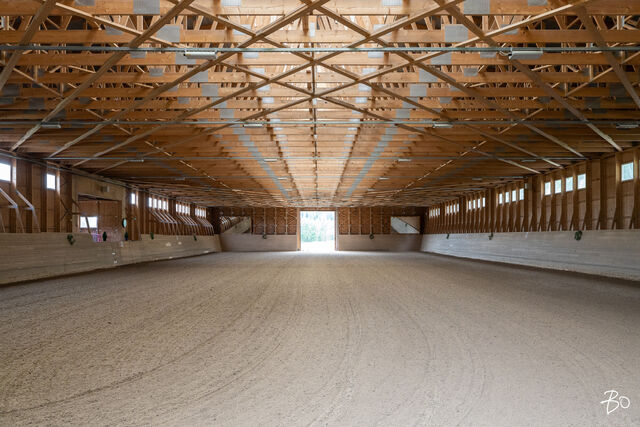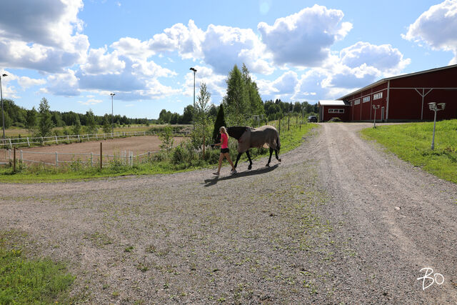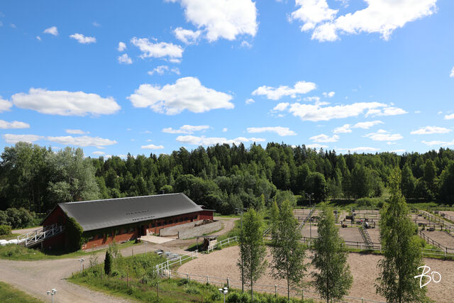Ison kouluradan mitat (24 x 60 m) täyttävä maneesirakennus rakennettiin 2013 ja myös ulkoratsastuskenttä rakennettiin kouluratsastuksen pitkän radan standardin (22 x 60 m) mukaan. Molemmissa on hyvät hiekka-kuitupohjat, joita on huollettu ja ylläpidetty säännöllisesti. Täällä on tilaa niin ulkolaidunalueille kuin ratsastuspoluille. Bonuksena vielä kaupungilta vuokrattu lähes 6 hehtaarin pelto, jossa isäntäväki viljelee laidunnurmea hevosten laidunnustarpeisiin. Lannan levityksestä on vastaanottosopimus naapuriviljelijän kanssa, kiertotaloutta parhaimmillaan.