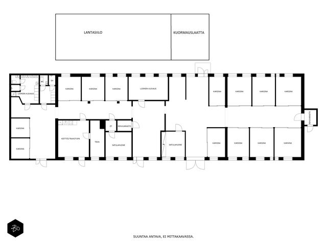Jätepuristin tallitoiminnassa suurjätteisiin, tyhjennys n. 500€/vuosi.