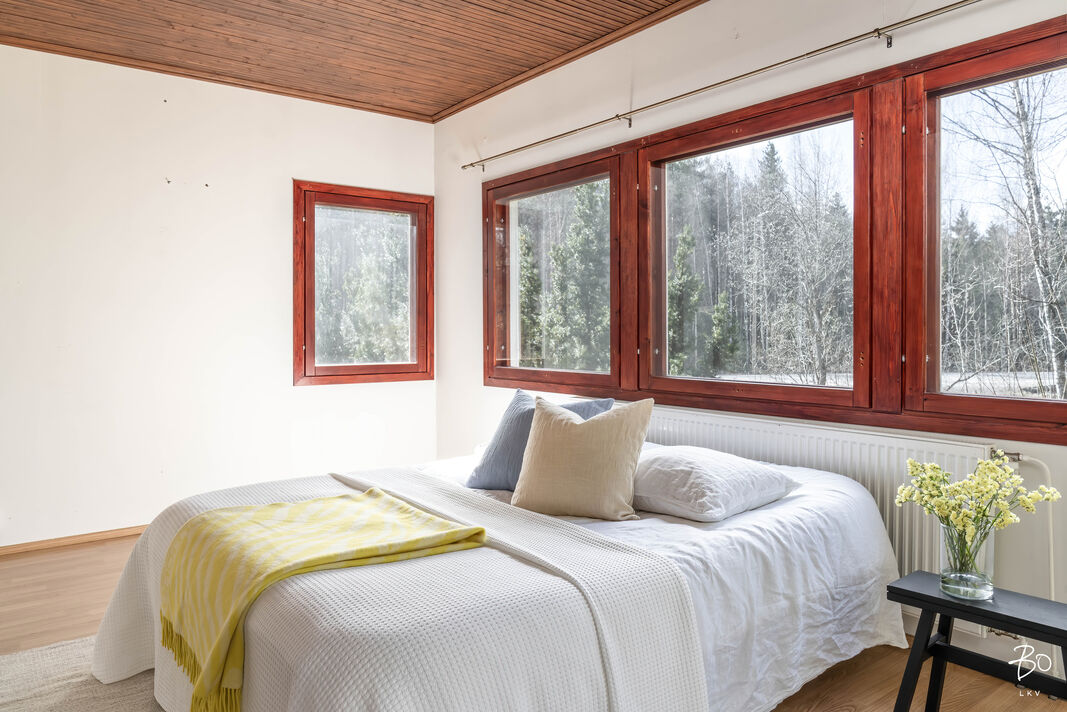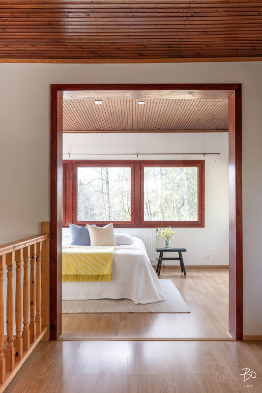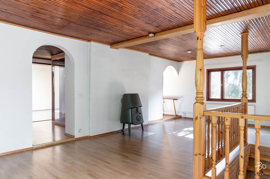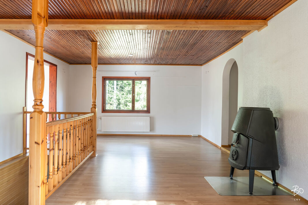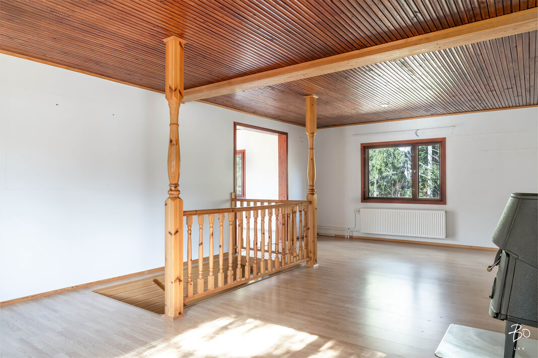 Talon yläkerrassa on avarat huoneet ja kellarissa tilava aulatila, kylpyhuone ja puulämmitteinen sauna. Kellarissa on myös tilava autotalli.