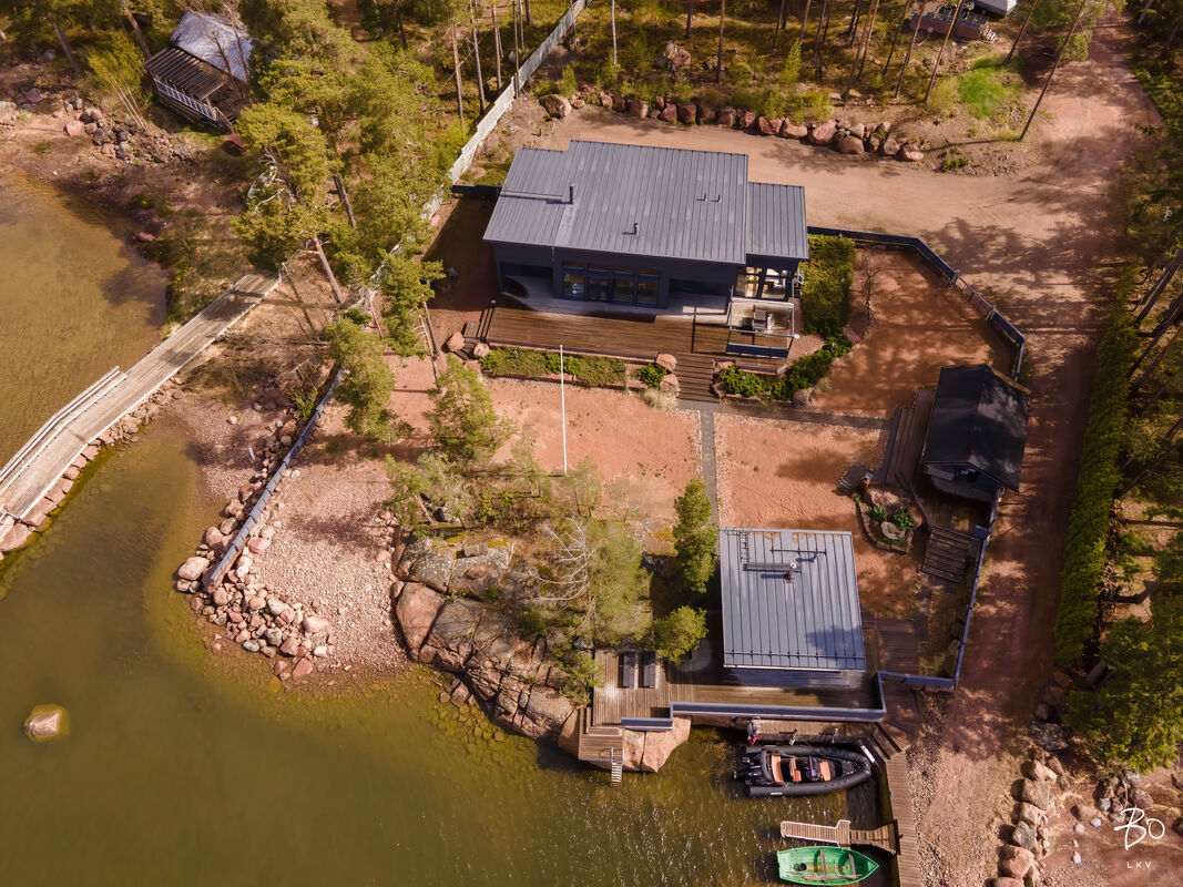 Tervetuloa tutustumaan tähän ainutlaatuiseen kokonaisuuteen, jossa moderni arkkitehtuuri, laadukkaat materiaalit ja oma ranta muodostavat harmonisen yhdistelmän. Koti sijaitsee omalla, länteen suuntautuvalla rantatontilla, josta avautuvat upeat näkymät merelle ja ilta-auringon suuntaan.