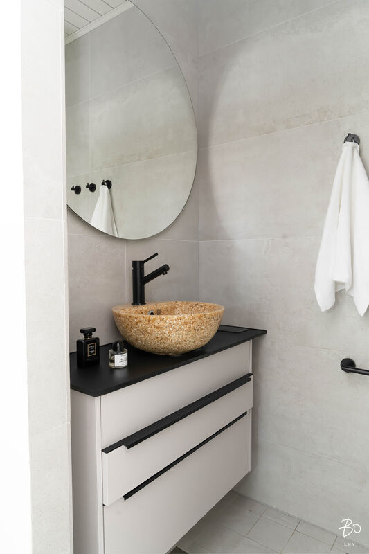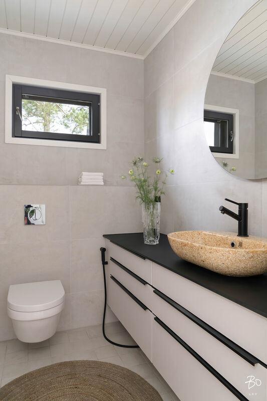 Varustus: lattialämmitys, peilikaappi