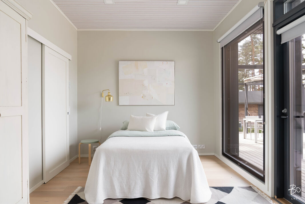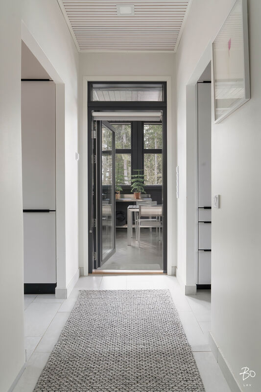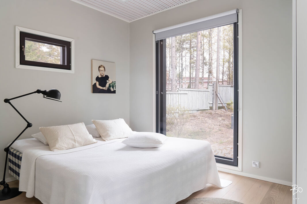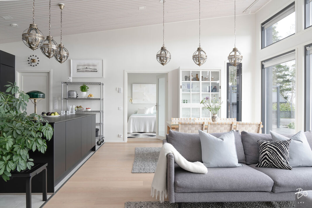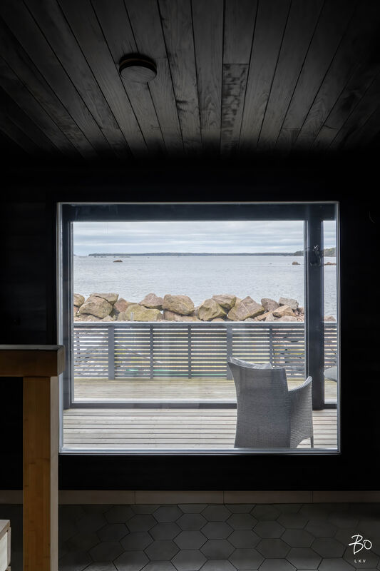 Koti on suunniteltu meren äärellä viihtymiseen. Korkea huonekorkeus, suuret lattiasta kattoon ulottuvat ikkunat ja avara pohjaratkaisu tuovat runsaasti valoa ja tilan tuntua. Merimaisema avautuu suoraan olohuoneesta ja keittiöstä luonnon kauneus on jatkuvasti läsnä.