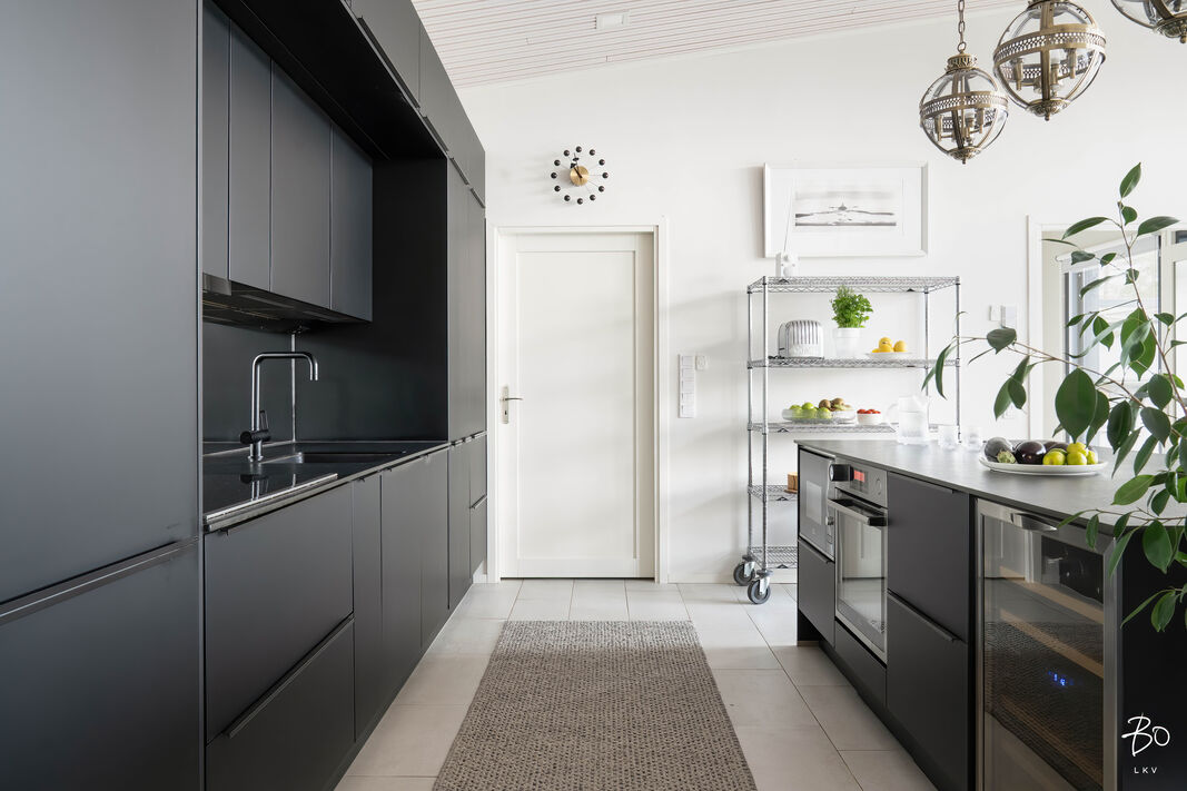 Noblessa-keittiö saarekkeineen on laadukas ja käytännöllinen kokonaisuus, jossa ruoanlaitto ja seurustelu yhdistyvät saumattomasti. Kodin oleskelutilat jatkuvat ulos: suuri lasitettu terassi kesäkeittiöineen mahdollistaa pitkän sesongin ulkona ruokailemiseen ja yhdessäoloon. Lisäksi avoterassi tarjoaa täydelliset puitteet auringosta ja merinäköalasta nauttimiseen.