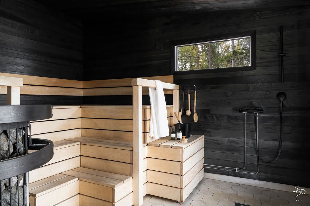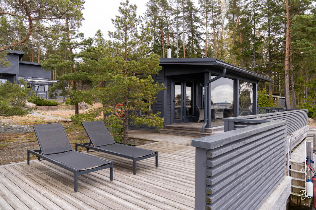 Tontti laskeutuu loivasti omalle kalliorannalle, jonne on sijoitettu erillinen rantasauna puukiukaalla aito suomalainen elämys meren äärellä. Saunasta pääsee halutessaan suoraan vilvoittelemaan mereen. Veneilijälle on tarjolla suojaisa venepaikka aallonmurtajan takana, joten vesille pääsee helposti ja turvallisesti omasta rannasta.