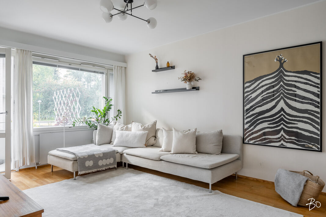 Tervetuloa tutustumaan tähän ihastuttavaan 54 m² kolmioon, joka sijaitsee ensimmäisessä kerroksessa suositulla Haukilahden alueella. Tässä kodissa on juuri maalattu kaikki pinnat ja vaihdettu upea tammiparketti lattia- koti on täysin muuttovalmis. Kodin pohjaratkaisu on toimiva ja upea tilava olohuone, jonka monipuoliset sisustusmahdollisuudet antavat tilaa omalle luovuudelle. Ison ikkunan ansiosta luonnonvalo tulvii sisään ja luo asuntoon lämpimän ja viihtyisän tunnelman. Olohuoneesta on suora pääsy parvekkeelle, jossa voit nauttia aamukahvit tai viettää rentouttavia hetkiä.