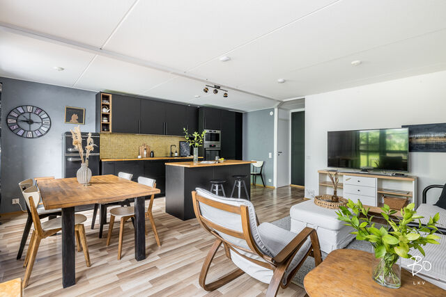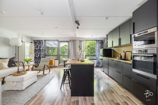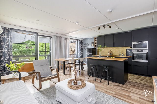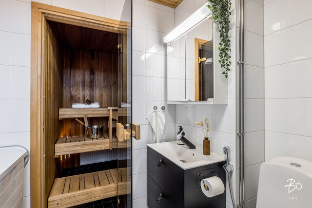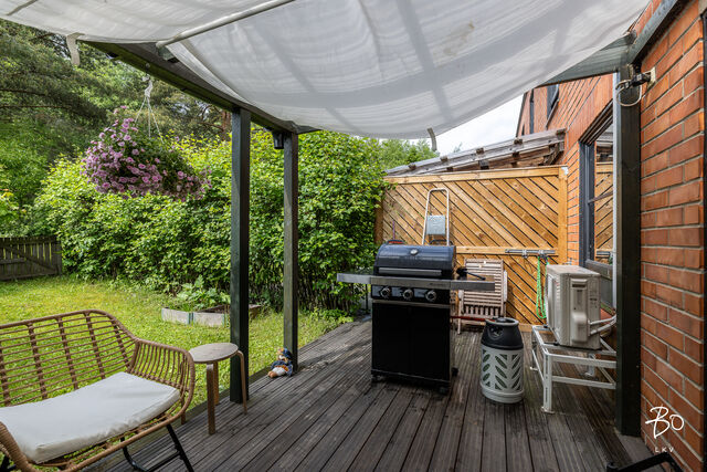 Todella toimivapohjainen ja hyvällä maulla toteutettu koti etsii nyt uutta omistajaansa! Asunto sijaitsee yhtiön viimeisessä rivistössä, jonka ansioista oma piha ikään kuin jatkuu puistomaisemaan. Huoneiston makuuhuoneet sijoittuvat yläkertaan ja alakerran olohuone/keittiö-kokonaisuus on vertaansa vailla. Avaruutta, valoa ja tilaa löytyy! Yläkerran kylpyhuoneen yhteydessä käytössäsi on oma sauna. Päämakuuhuoneeseen on asennettu viilentävä ilmalämpöpumppu.