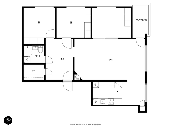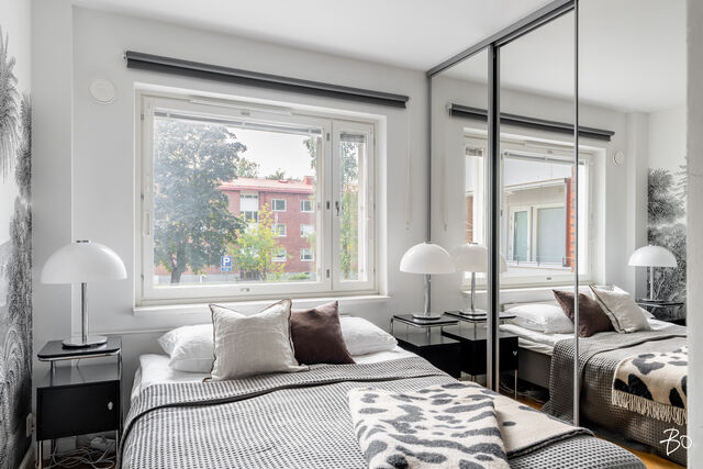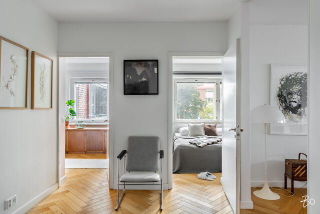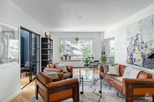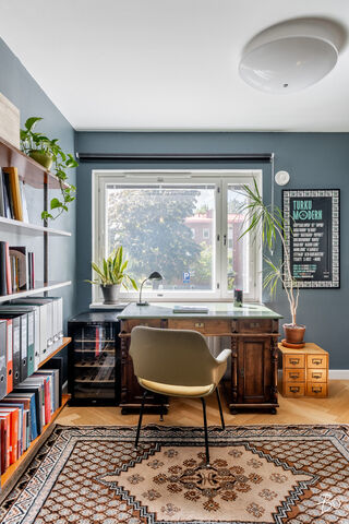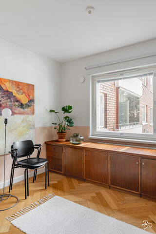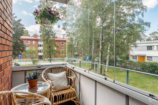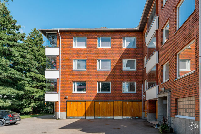 Tämä koti mukailee kauniisti rakennusajan henkeä, jossa upea kalanruotoparketti ja käyttökuntoinen avotakka tuo ylellistä viihtyisyyttä ja kodikkuutta asumiseen. Olohuoneessa suuri päätyikkuna ja avarat näkymät moneen suuntaan tekevät tilasta valoisan kodin keskipisteen. Kolme makuuhuonetta, joissa yhdessä tyylikkäät lasiliukuovet. Ulkovaatteille ja harrastusvälineille on myös reilusti tilaa avarassa eteisessä ja vaatehuoneessa. Modernissa keittiössä on korkeakiiltoiset valkoiset kaapistot, sekä laadukkaat kodinkoneet. Kylpyhuone on uusittu putkiremontin yhteydessä (2008). Yhtiöjärjestyksen tiedosta poiketen huoneisto sijaitsee yhtiön 2 kerroksessa, joka on ensimmäinen asuinkerros.