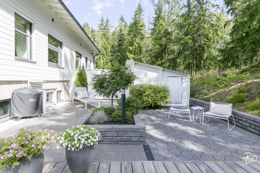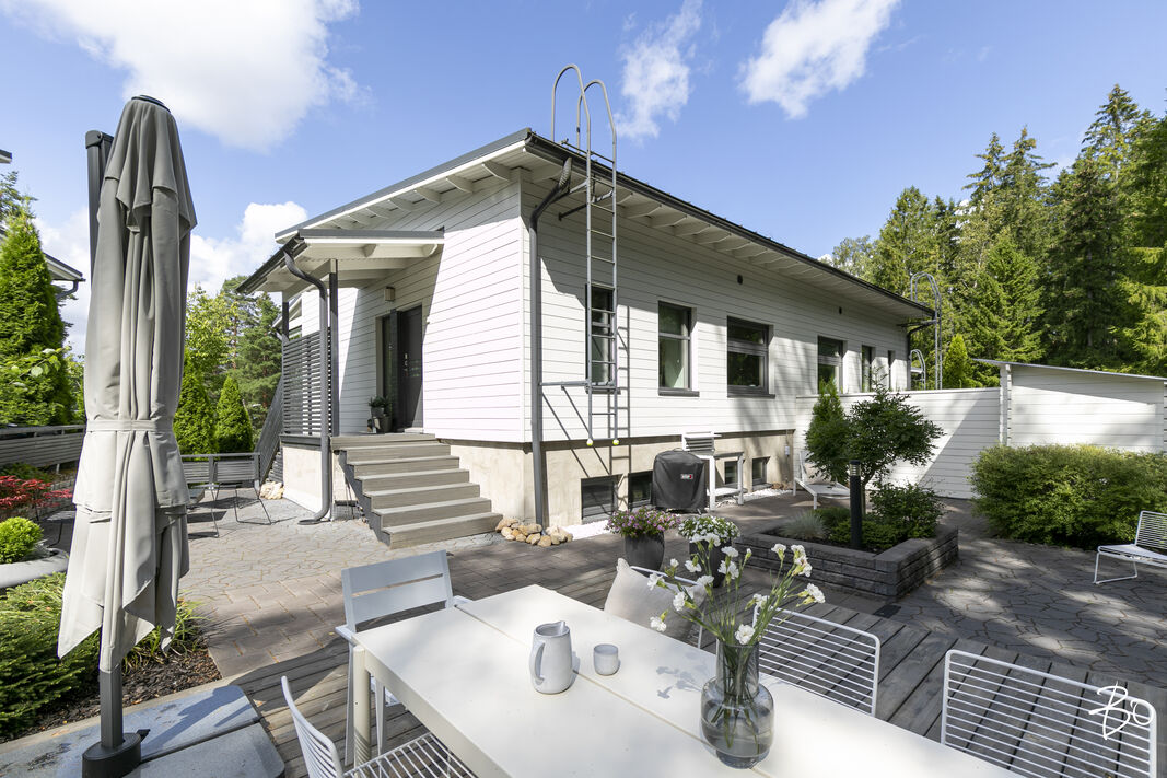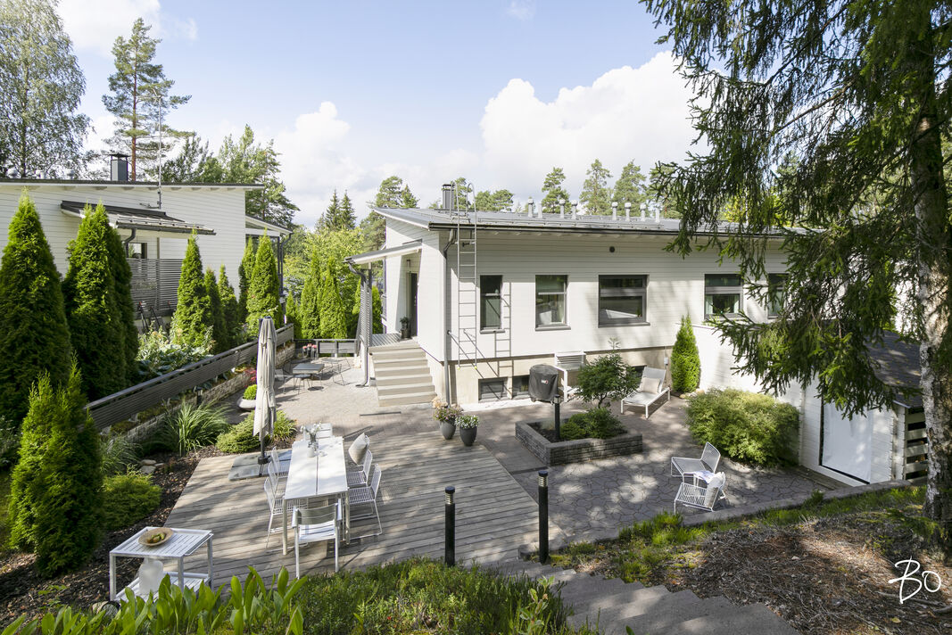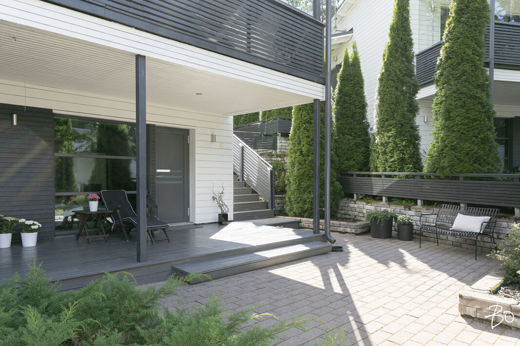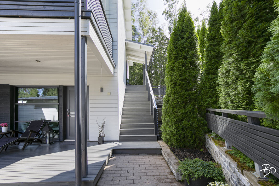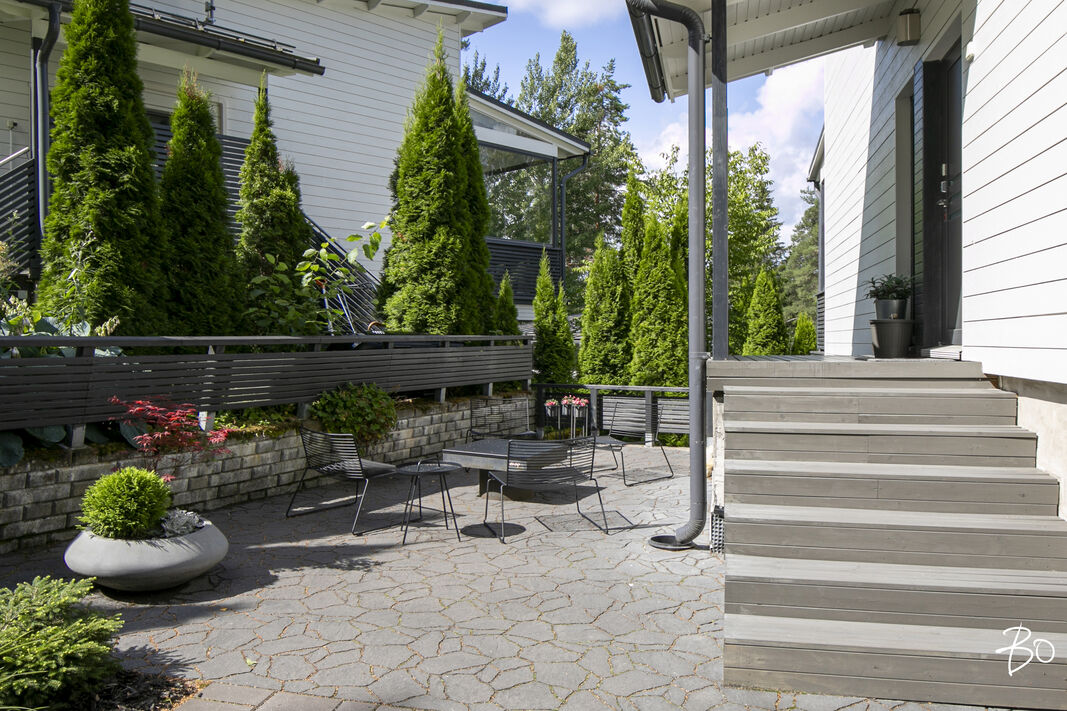 Tämä paritalokoti tarjoaa tyylikkäät puitteet ja rentoa asumista ihanalla paikalla  päättyvän tien varrella, vehreän puiston kainalossa. Kolmen paritalon pieni yhteisö tuo omaa rauhaa ja yhteisöllistä fiilistä.