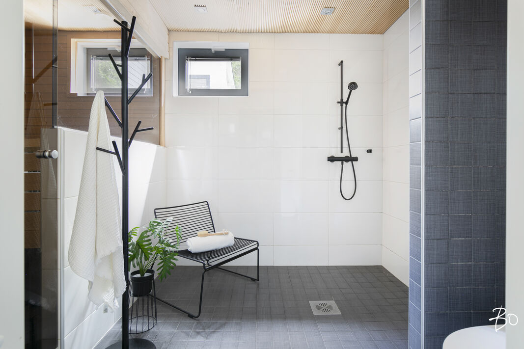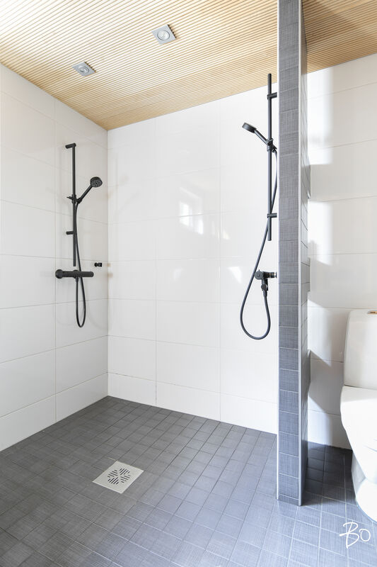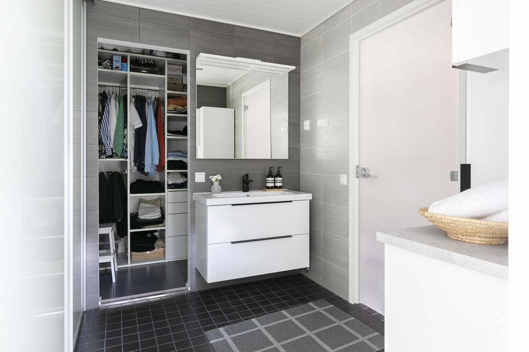 Varustus: pesukoneliitäntä, pesuallas, lattialämmitys, lattiakaivo, keskuspölynimuri